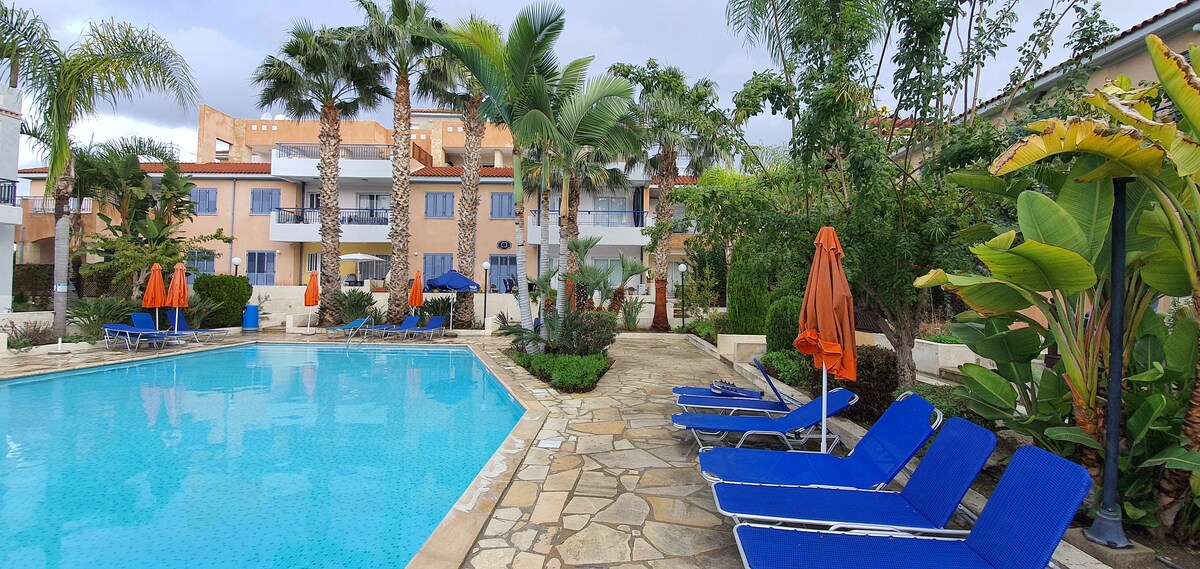 Mit diesem herrlichen und gemütlichen Haus werden Sie einen erholsamen Urlaub genießen. Es verfügt über zwei schöne Schlafzimmer mit 2 Einzelbetten / Schlafsofa, Kingsize-Bett, 1 Schlafsofa im Wohnzimmer, eine voll ausgestattete Küche, eine Terrasse mit Garten-/Poolblick. Alle Zimmer verfügen über Klimaanlage und einen Balkon mit Pool-/ Gartenblick. Du stehst fast im Mittelpunkt: Kings Avenue Mall (5 Minuten), Paphos Wasserpark (7 Minuten), Alykes Strand (8 Minuten).