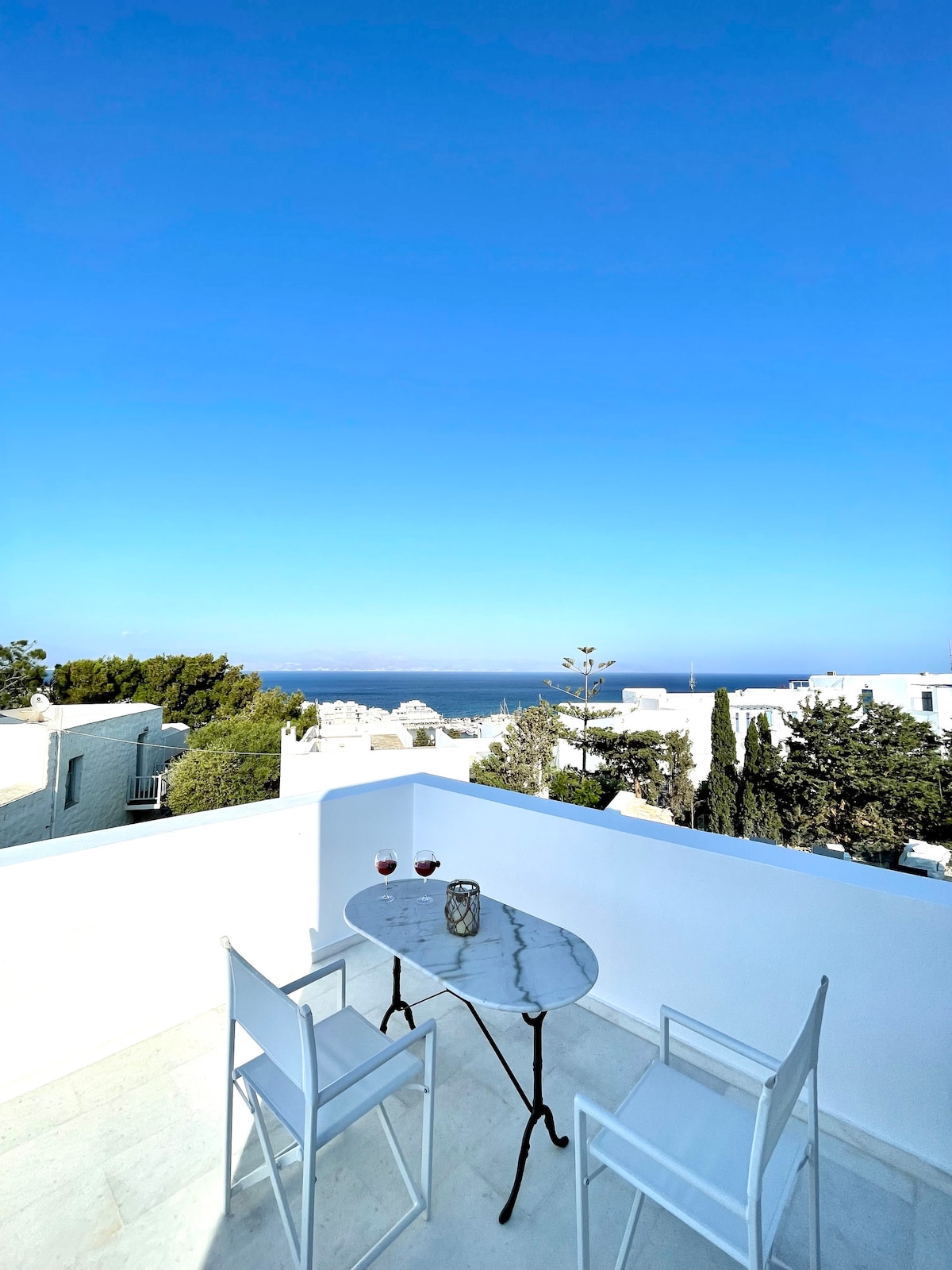 Nested in Naxos Town with stunning views out to the Aegean Sea we offer out guests the opportunity of an exclusive upretentions relaxing experience. Within easy reach from island’s famous PORTARA and Venetian Castle. Our philosophy is to offer first-rate hospitality coupled with unrivaled privacy. Much more than a home our deluxe suite offers supreme comfort combined with elegance style and unique Greek hospitality. it’ s warm minimal lines create a relaxing atmosphere.