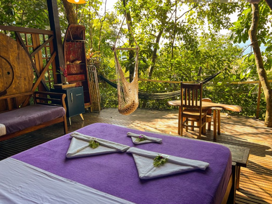 Dieses brandneue Haus liegt hoch über den Bäumen im Öko-Dorf Aldeia Rizoma, einem umzäunten Anwesen 15 Minuten vom historischen Zentrum der Stadt entfernt. Das Anwesen bietet einen Dschungel-Fitnessraum, eine Sauna (extra bezahlt), private Wanderwege und Zugang zu 5 privaten Wasserfällen. Das Studio mit einem Schlafzimmer verfügt über ein hoch gebautes Kingsize-Bett, sodass du den Wald von dort aus beobachten kannst. Es bietet einen privaten Whirlpool und eine vollausgestattete Küche. Es gibt ein Zustellbett, das für eine dritte Person gegen eine zusätzliche Gebühr pro Nacht genutzt werden kann