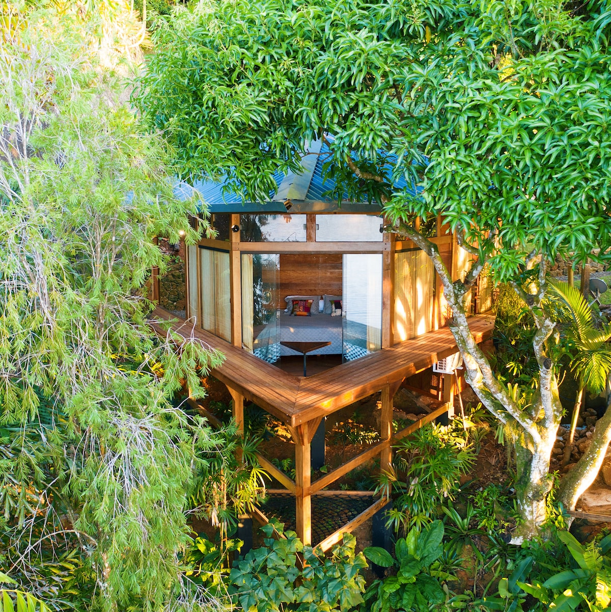 This brand new house sits high above the trees inside the Aldeia Rizoma eco village, a gated property 15 minutes away from the city historical center. The property offers a jungle gym, sauna (paid as an extra), private trails and access to 5 private waterfalls. The one bedroom studio has a king size bed built high so you can watch the forrest from it. It offers a private hot tube and a fully equipped kitchen. There is an extra bed that can be used for a third person with an extra fee per night