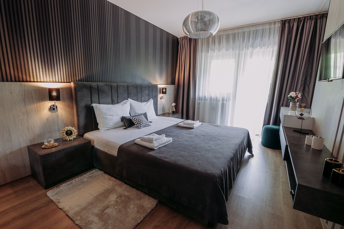 SPAre Time it’s about you and spoiling yourself. Here you can indulge yourself in your private SPA, including a sauna with salt bricks and a Jacuzzi with a city view. You can have a memorable experience with your significant other but also with your visiting friends, having access to a lot of activities such as: PlayStation 5, poker table, darts and many board games. We have prepared for you the ultimate bedroom experience, but you need to discover it by yourself. Hint: 50 Shades of...
