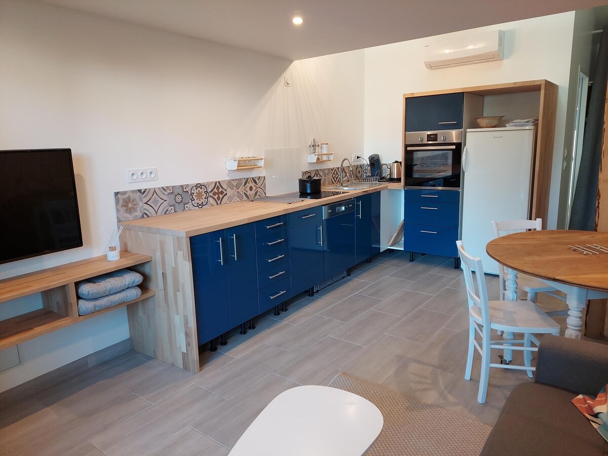 Entspannen Sie sich in dieser ruhigen und eleganten Unterkunft. Nur einen Katzensprung vom Lac de Parentis und in der Nähe von Geschäften (200 m von einem Supermarkt entfernt). Die Unterkunft liegt an der Velodyssée (Fahrradweg). Es ist eine Unterkunft von 30 Quadratmetern, bestehend aus einem großen gemütlichen Zimmer mit Bett von 160 cm, einem Essbereich, einer ausgestatteten Küche und einem Badezimmer mit Dusche, WC und Waschbecken. Sie profitieren von einem geschützten Bereich zum Anbringen Ihrer Fahrräder, einem Parkplatz für Autos.