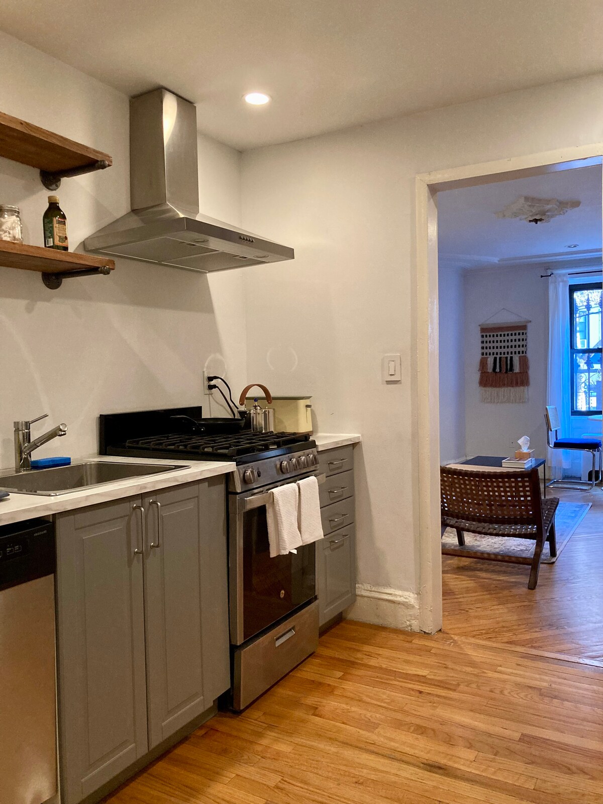Erlebe das ruhige und schicke Ambiente dieser neu renovierten Studiowohnung in South Slope, südlich von Park Slope. Ein Queensize-Bett und ein Schlafsofa bieten Platz für bis zu vier (4) Gäste. Die Einheit ist komplett mit modernen Annehmlichkeiten wie einem Smart-TV, einer geteilten Klimaanlage, einer Waschmaschine/einem Trockner und einer stilvollen Küche ausgestattet. Das charmante Design der Wohnung verfügt über freiliegende Ziegelwände, hohe Decken und eine Nachbarschaft, die den Raum perfekt ergänzt und die Essenz des alten Brooklyn hervorruft.