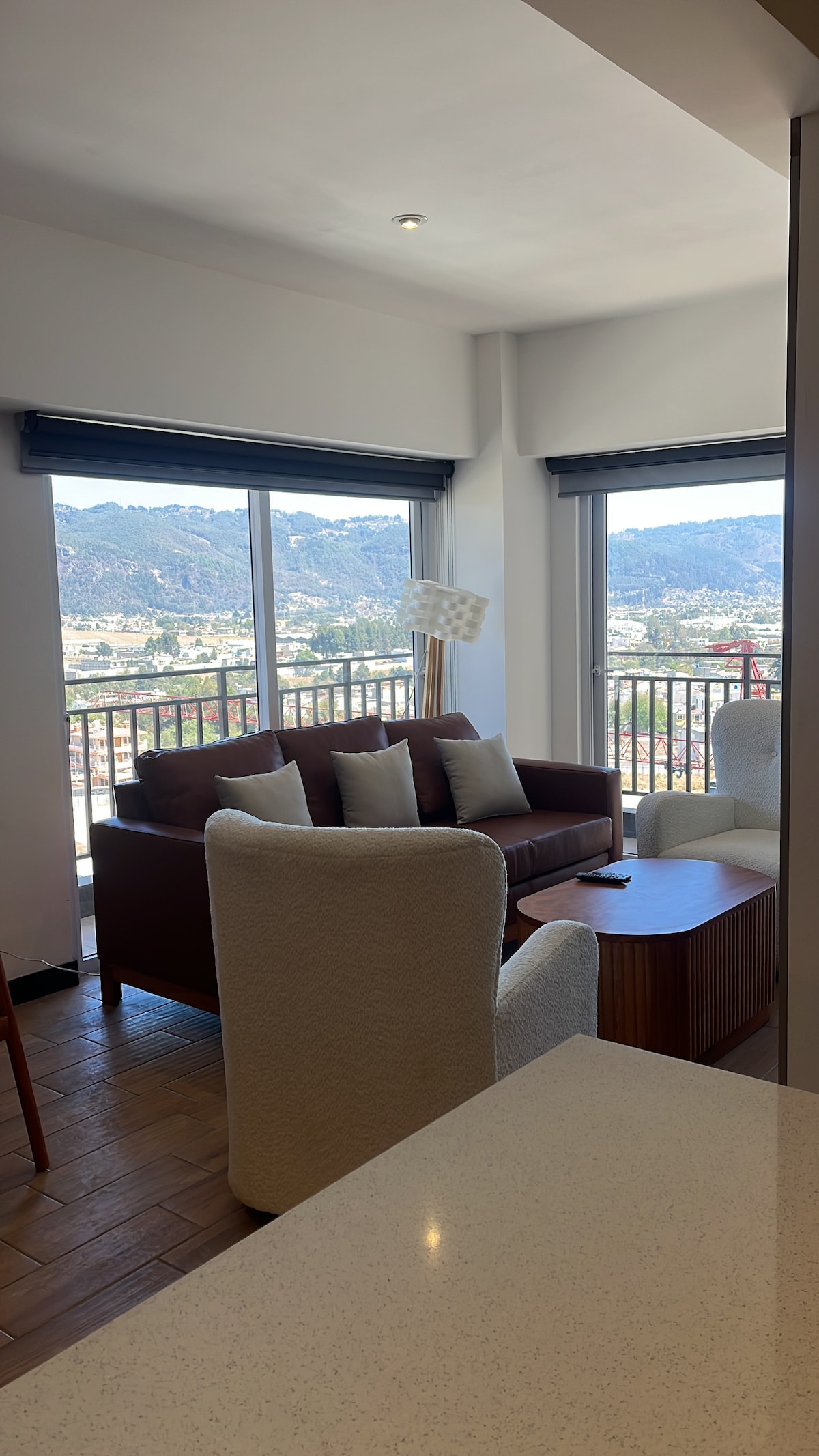 Genieße es, im Herzen von Xela zu sein, mit Cafés, Restaurants, Märkten und historischen Orten. Diese schöne 2-Zimmer-Wohnung, modern, ruhig, hygienisch und sehr zentral gelegen, ist komplett ausgestattet, für einen unbeschwerten Aufenthalt, alles so gestaltet, dass Sie sich wie zu Hause fühlen. Das Hotel liegt 5 Minuten vom Xela Central Park entfernt, zu Fuß, im Gebäude mit 24/7 Sicherheitsdienst, 2 Aufzügen und sicherem Parkplatz.
