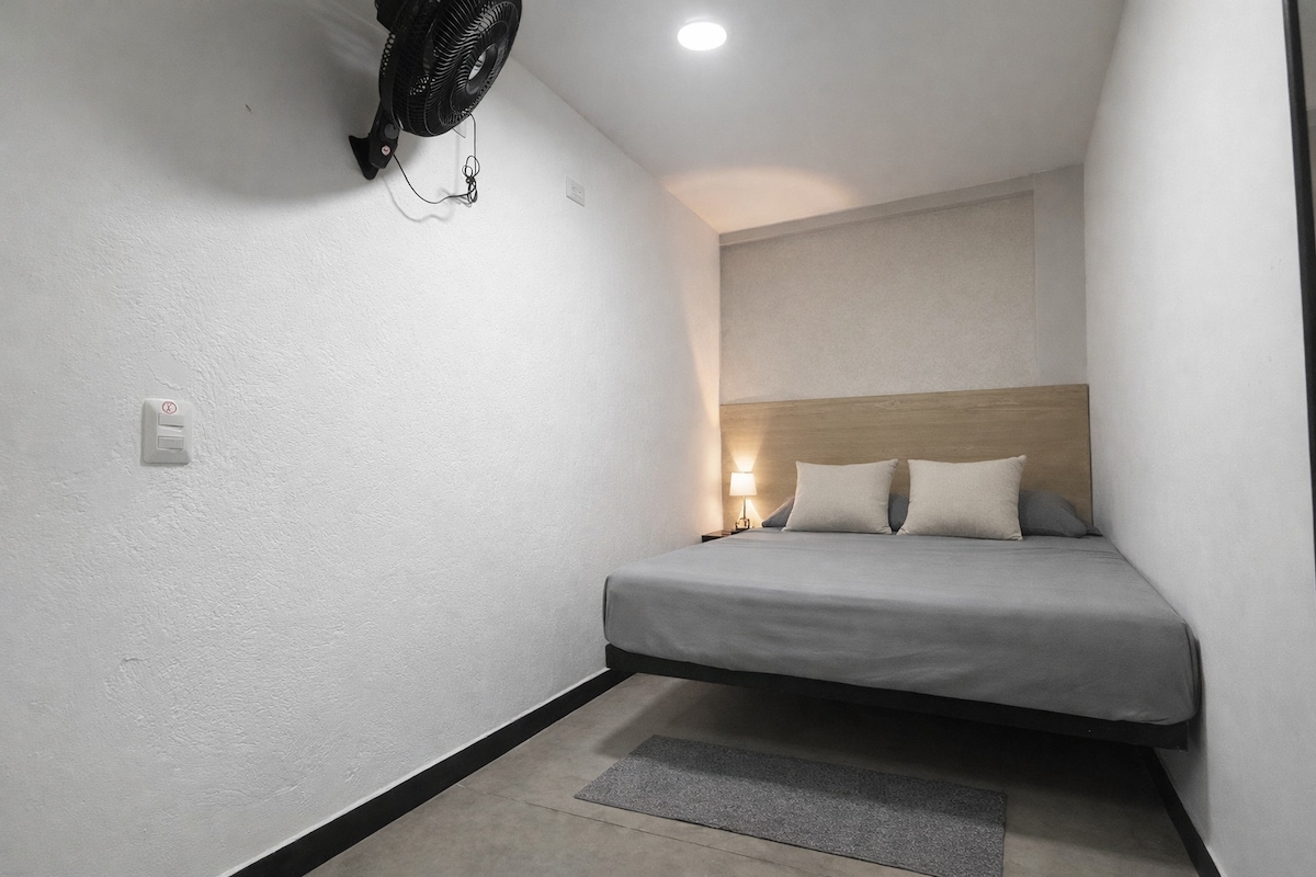 Este alojamiento se encuentra ubicado en un piso inferior (-1), nivel sótano, dentro de un edificio turístico en pleno Parque Lleras, una de las zonas más dinámicas y visitadas de Medellín. La habitación no cuenta con ventanas, ya que está ubicada en el nivel subterráneo del edificio. Es un espacio privado, cómodo y funcional, ideal para huéspedes que buscan una excelente ubicación y una estancia práctica en el corazón de la ciudad.