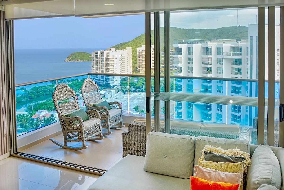 Charmante Luxus-Wohnung in Santa Marta 🌴, ideal für Paare, Familien oder Reisende. Modernes Dekor, ausgestattete Küche, 2 Schlafzimmer mit Doppelbett und Queensize-Bett und Schlafsofa. 2 private Balkone mit Blick auf die Bucht und das Meer. Gemeinschaftsbereiche wie Schwimmbad🏊♂️, Fitnessraum🏋️, Restaurant, Bar, Coworking, Spa, geräumige Lobby und Sicherheit rund um die Uhr🛡️. 20 Minuten vom Flughafen entfernt ✈️ und in der Nähe von Supermärkten und Restaurants. ✨Erlebe einen unvergesslichen Aufenthalt in Santa Marta! 🌊