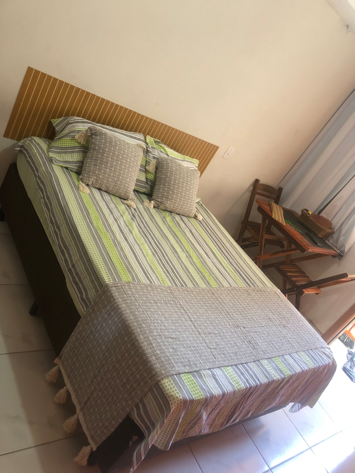 Der Raum ist eine private Suite, die vom Rest des Hauses getrennt ist, mit Badezimmer und eigenem Eingang, was dem Gast viel Privatsphäre zum Ein- und Aussteigen bietet; zusätzlich zu einem Parkplatz in einer rotierenden Garage. Es befindet sich in einer ruhigen und zentralen Region der Stadt, nur zwei Autominuten vom Parque do Povo und Vila do Artessão entfernt.