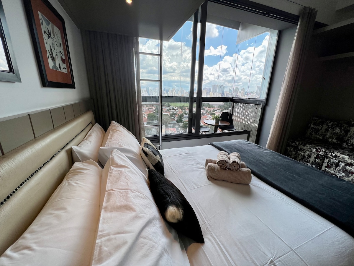 Studio com vaga, Ar condicionado, 25m , 10° andar com uma vista incrível no terraço para o Jockey Club e Marginal Pinheiros. Oferece um ambiente amplo e tranquilo. Há 400m da estação Butantã a locomoção para pontos importantes da cidade se torna extremamente acessível . Shopping Eldorado (1.2km) Faria lima (2 km) Pinheiros (1.7 km) USP (1.1 km) Metrô Butantã (400m) Jockey Club (400m) Hospital Albert Einstein (4.5km) Morumbis (4 km) Acadepol (1.5km) Portaria 24 horas .