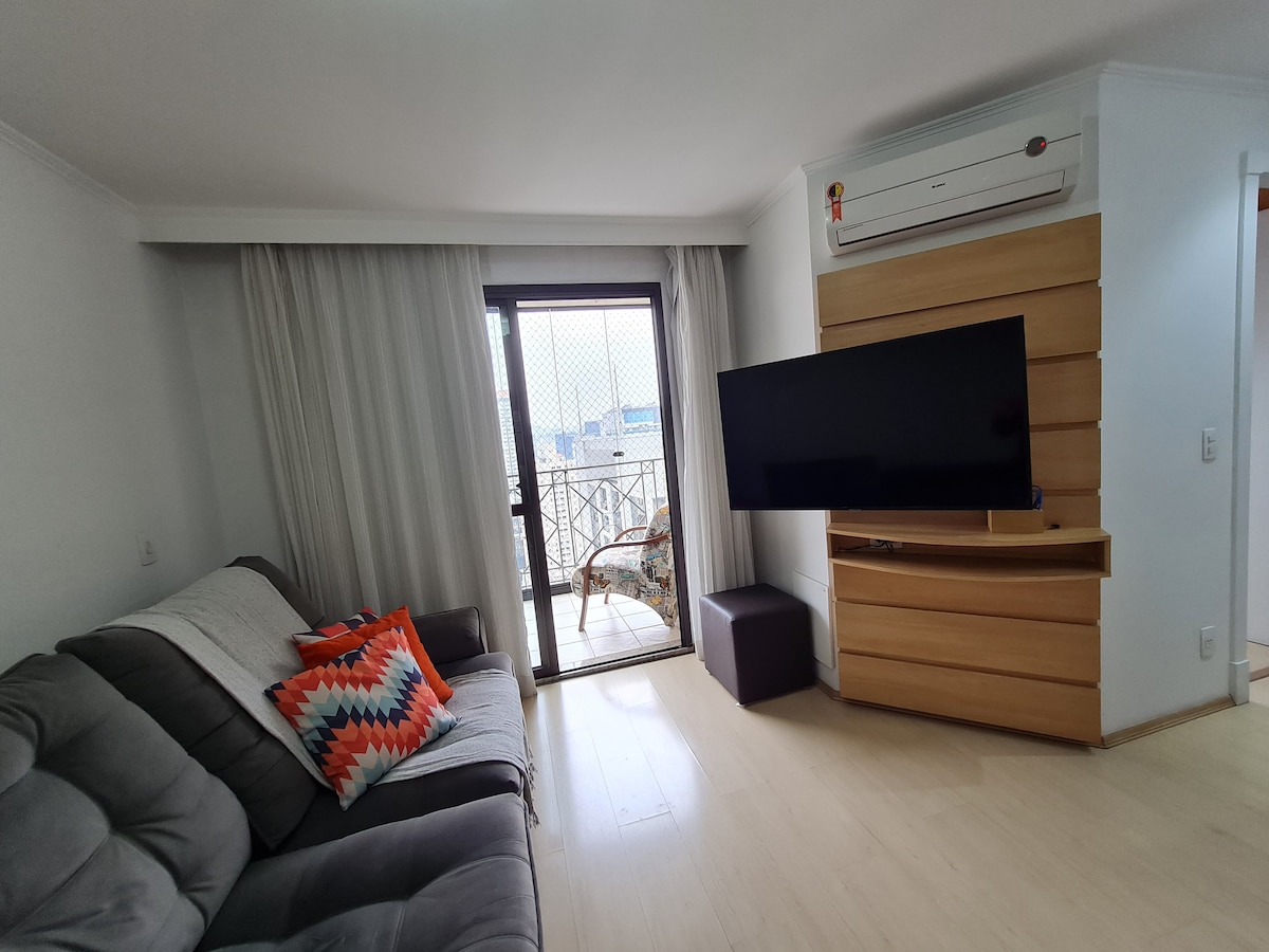 Neu renovierte Wohnung, super komfortabel, ausgestattet, 70 m2, in einer der besten Regionen von São Paulo, an der Grenze zwischen Itaim Bibi und Vila Olímpia, neben der Av. Faria Lima. Unsere Differentiale: - Garagenplatz Rezeption rund um die Uhr - Super ausgestattete Küche und Wäscherei - Home Office Space - Lärmschutzfenster mit automatischen Rollläden - 58-Zoll-4K-TV, mit Netflix, Prime Video, Disney, HBO Max, Paramount+, Apple TV - Split-Klimaanlage - Premium-Bettwäsche und riesige Handtücher - Deca-Dusche Heizung