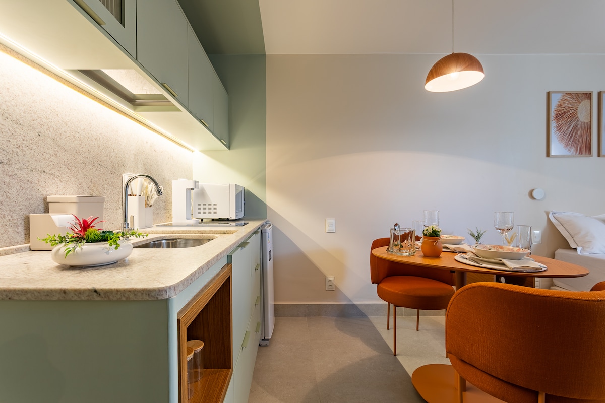 At the Cullinan Hplus Premium hotel. Very new and contemporary. Amazing location! Two malls across the street. Great tourist spots to go on foot. Charming, finely decorated and furnished unit. On the highest floor, with a beautiful view of Brasília and Asa Norte. 29m² luxury suite with king bed. Well equipped with several items for your convenience. Acoustic insulation on the windows for a great rest. Smart TV. Garage. Swimming pool, gym, sauna and restaurant. Check in 24 hours at reception.