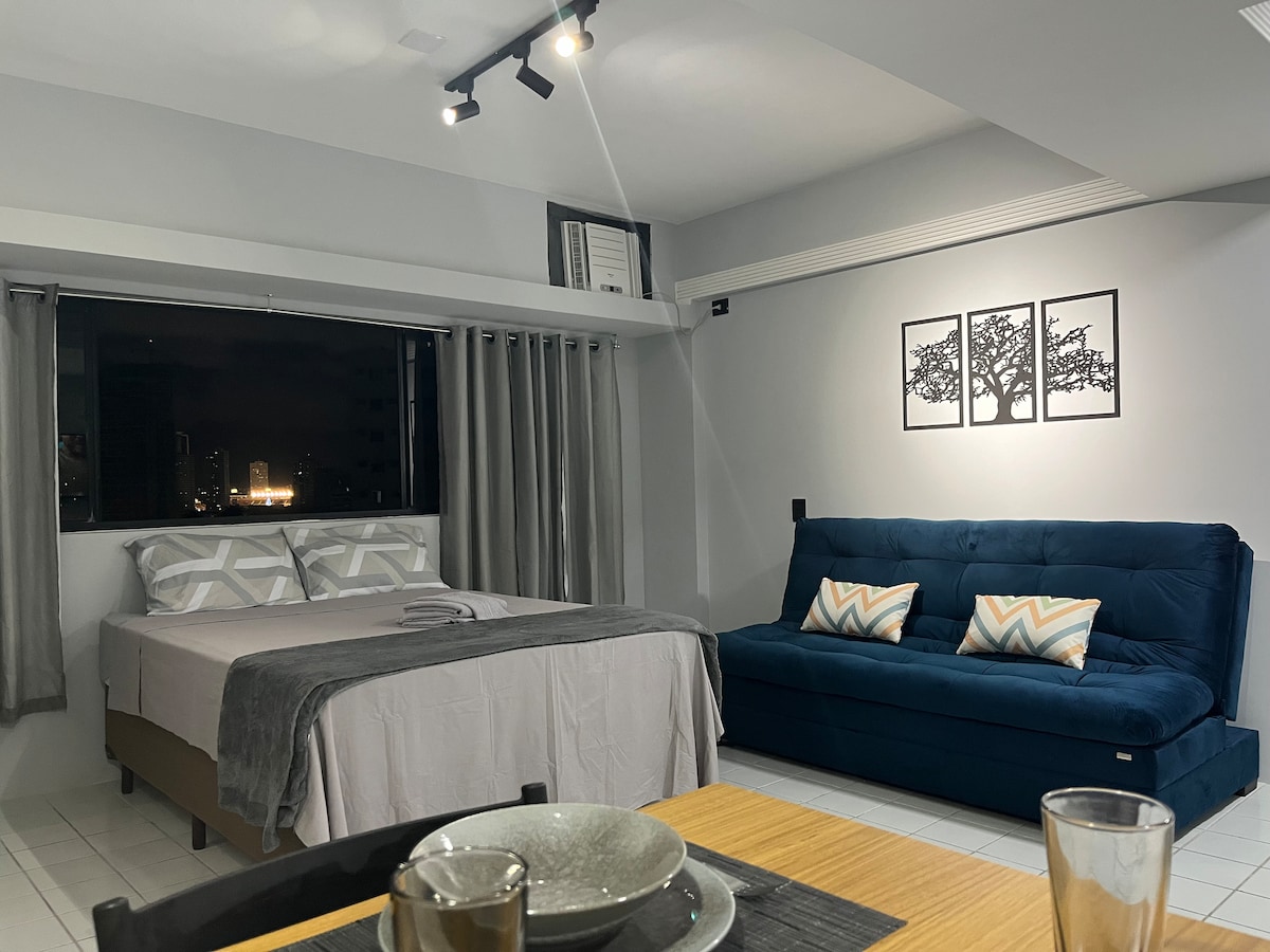 Dieser einzigartige Ort hat seinen eigenen Stil. Perfekt für diejenigen, die in Recife arbeiten oder ein paar Tage genießen möchten. Tolle Lage, in der Nähe des Strandes, der wichtigsten Einkaufszentren, Restaurants, Bäckereien, Cafés usw. Unsere Wohnung verfügt über ein bequemes Queensize-Bett und ein Zusatzbett. Premium-Bettwäsche. 50-Zoll-TV. Internet. Gut ausgestattete Küche. Ein bequemer Tisch zum Essen oder Arbeiten. Gebäude mit Parkplatz, Wäscherei, Coworking, Gourmet-Bereich, Pool, Whirlpool, Fitnessraum.