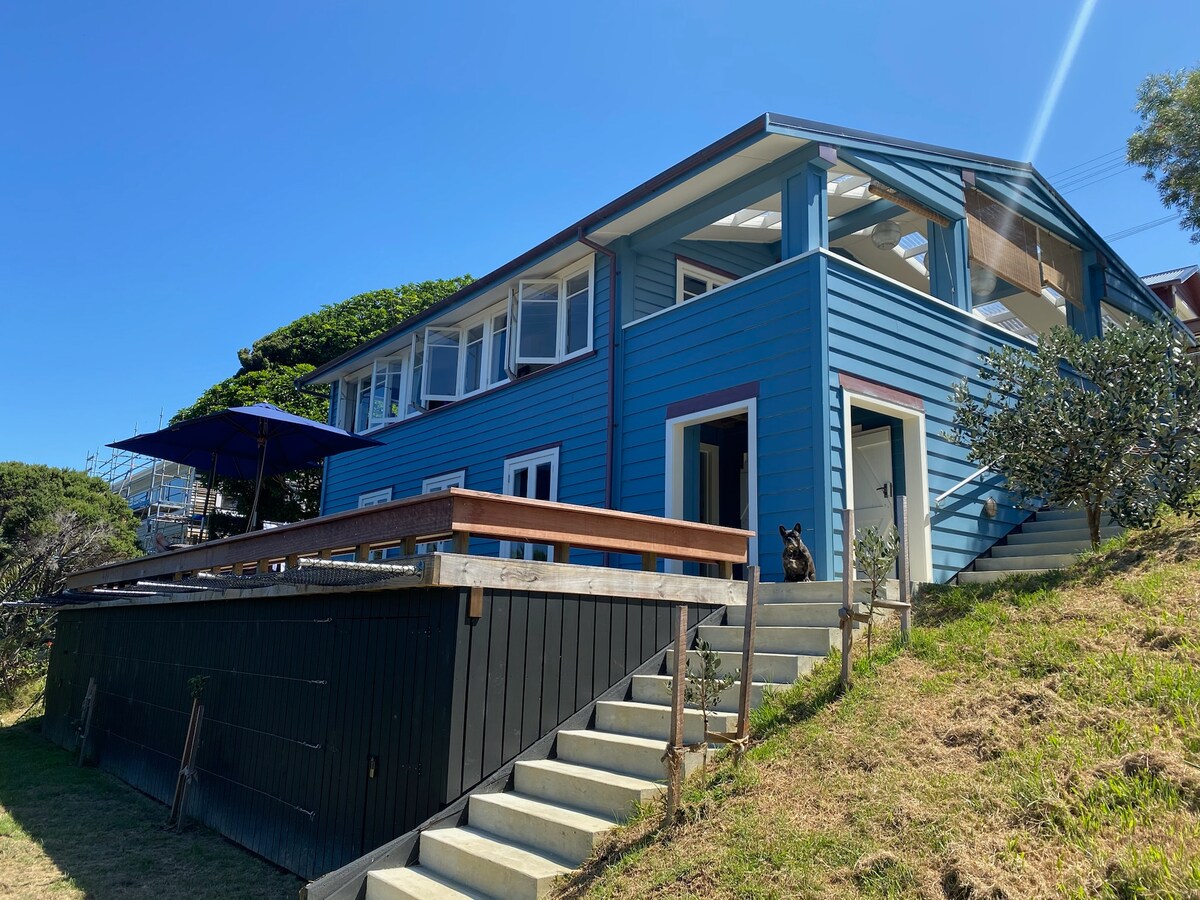 Erhöhte Strandlage, stilvoller Kiwi-Bach