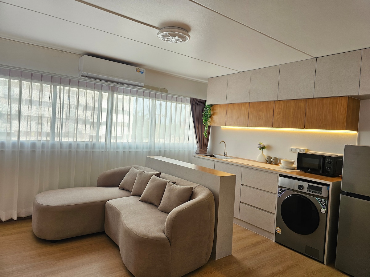 🌴Entspanntes Wohnen und gut für die Arbeit an diesem ruhigen Ort 🌟Das Zimmer ist voll ausgestattet, Smart-TV, separates Schlafzimmer, Wohnzimmer, voll ausgestattete Küche, Waschmaschine und Balkon in 25 qm. 💢WLAN kostenlos in allen Bereichen. 💢Gutes Arbeiten von zu Hause aus, Schreibtisch im Zimmer und gemeinsamer Arbeitsbereich in der Eigentumswohnung. 💢Gute Stimmung, entspannen Sie sich im farbenfrohen Garten, Pool, Fitnessraum und Sauna. 💢 7/11 ist in der Wohnung. Es gibt überall eine Vielzahl von lokalen Speisen. 💢Metro City kann mit dem nahegelegenen Skytrain erreicht werden. Der Flughafen Dmk ist 3 km von hier entfernt. 👍Alles in diesem Preis enthalten.