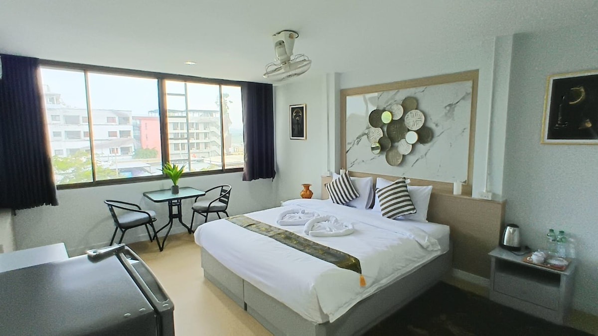 Max Residence liegt im Zentrum und ist bestrebt, der unverzichtbare Ort für Reisende zu werden, die Pattaya mit seinem einzigartigen Design besuchen möchten! Dieses Zimmer ist mit einem Queensize-Bett, einem kleinen Fernseher, einem Safe, einem Minikühlschrank und einem eigenen Badezimmer, einer Klimaanlage, Wasserflaschen, Handtüchern und grundlegenden Pflegeprodukten ausgestattet. Haartrockner und Wasserkocher werden auf Anfrage an unserer Rezeption bereitgestellt. Bitte beachte, dass sich alle „Standard“ -Zimmer auf der Rückseite ohne besondere Fensteransicht befinden.