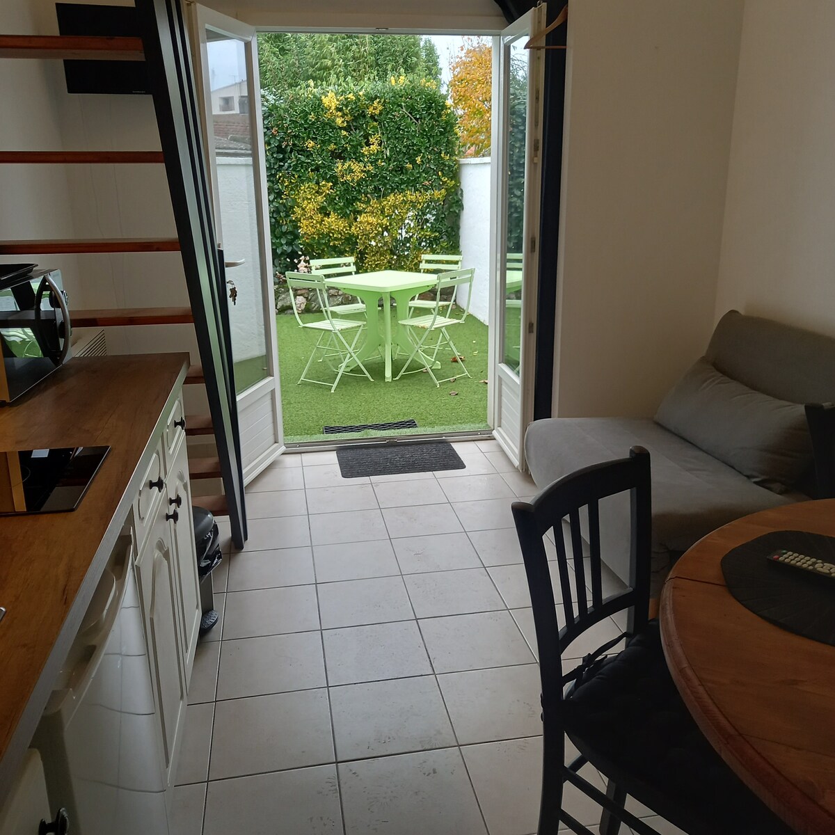 Studio mit Terrasse in sehr ruhiger Lage. 20 km von Saint Jean de Mont, 30 km von Noirmoutier, 50 km vom Zentrum von Nantes entfernt. SNCF-Bahnhof 7 km entfernt. Schlafzimmer im Zwischengeschoss mit großem Bett, Dusche, WC, ausgestatteter Küchenzeile, Parkplatz für Auto. Möglichkeit, Motorrad und Werkzeug in der Garage zu unterstellen... Besitzer ist Motorradfahrer. Viele Einkaufsmöglichkeiten in nächster Nähe