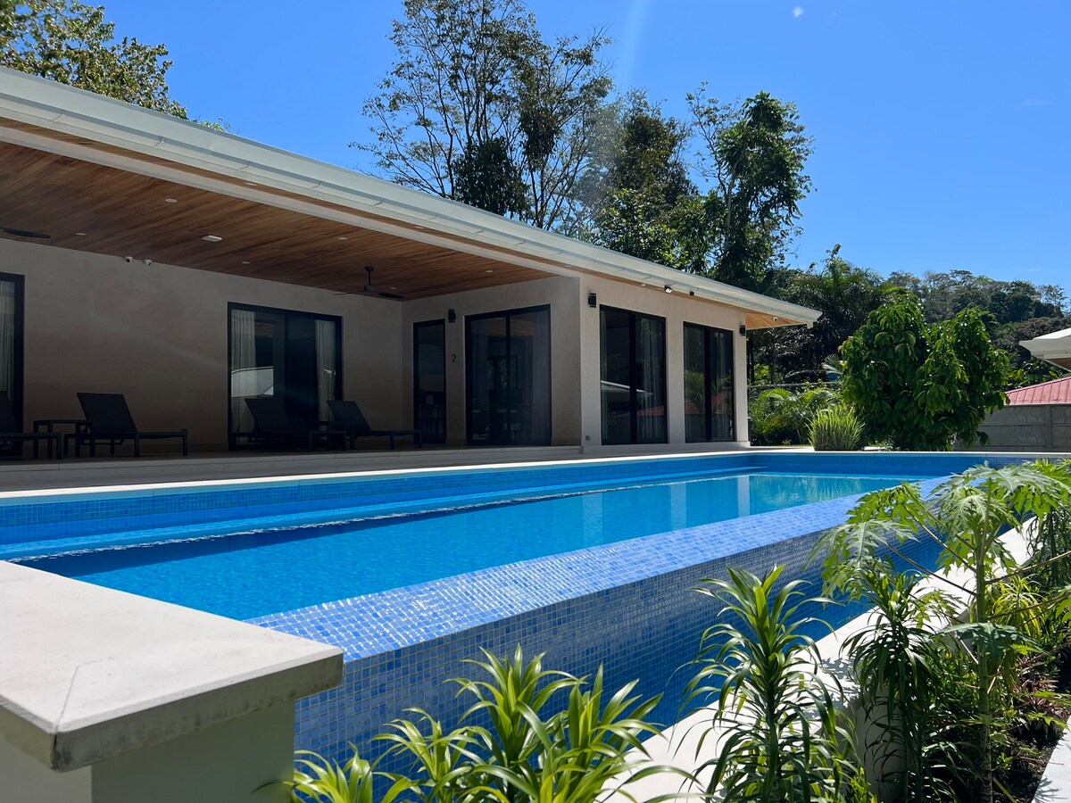 Willkommen in deinem privaten Luxusurlaub im Süden Costa Ricas — einer geräumigen Villa mit 4 Schlafzimmern und 4 Badezimmern mit Meerblick, die zum Entspannen und zur Wiederverbindung mit der Natur entworfen wurde. Das zweistöckige Layout umfasst zwei voll ausgestattete Küchen, ideal für Familien oder Freunde. Das Haus ist mit modernen Annehmlichkeiten wie Apple TV, Netflix und Amazon Prime sowie starkem WLAN ausgestattet. Entspanne dich im Infinity-Pool, grille frischen Fisch auf dem Grill oder genieße einen freundschaftlichen Wettbewerb am Tischtennis-Tisch oder Pétanque-/Boccia-Platz.