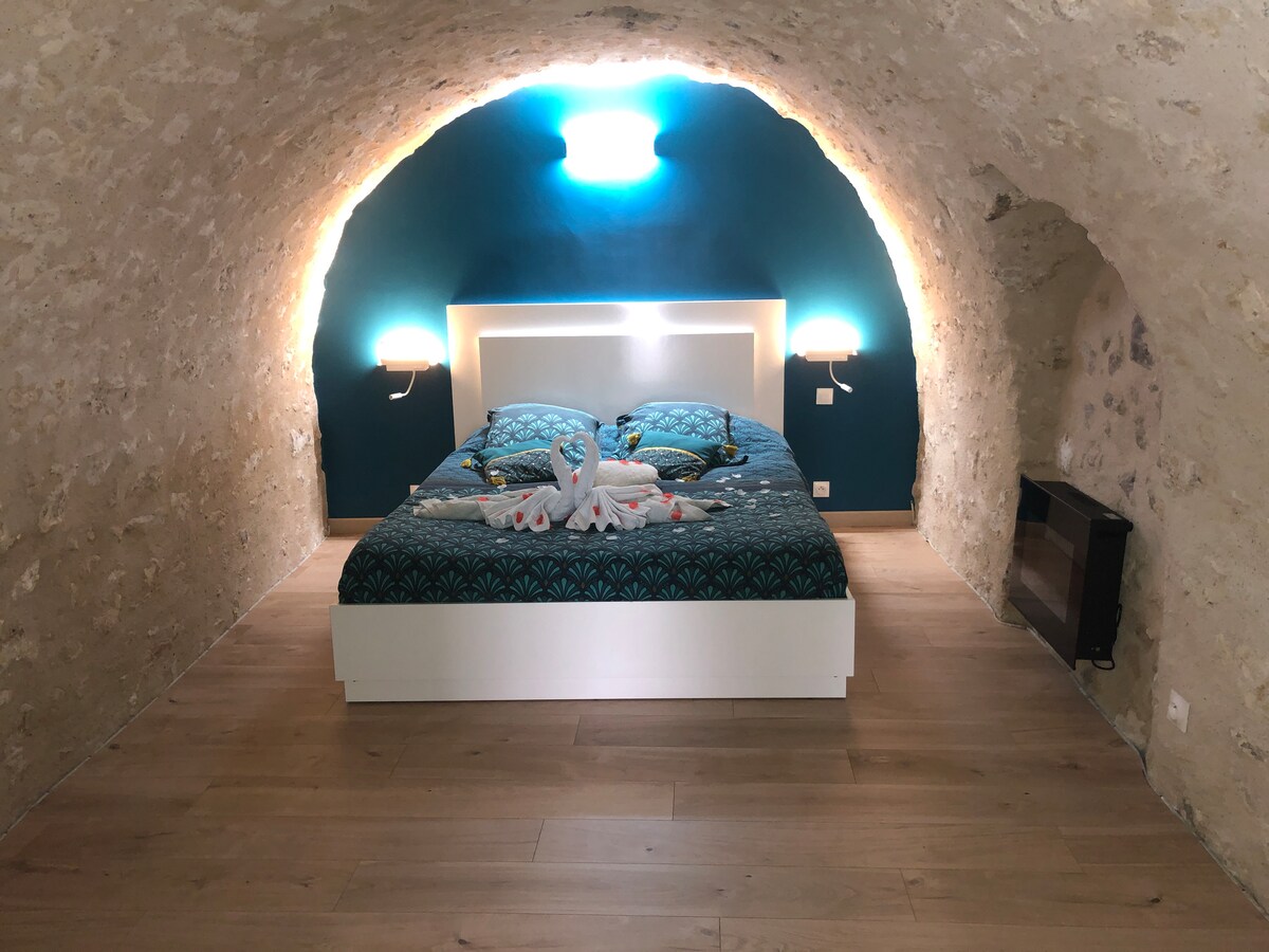 ✨ Ein einzigartiges Erlebnis Tauchen Sie ein in eine luxuriöse Troglodyte-Suite, ein seltenes Universum, in dem Naturstein, Licht und Komfort zu einer unvergesslichen Sinnesreise verschmelzen. Dieser einzigartige Rückzugsort wurde für Paare entwickelt, die Romantik und Entspannung suchen, und verfügt über ein privates Indoor-Spa, das das ganze Jahr über beheizt ist. Ein zeitloses Paradies, in dem Wohlbefinden, Charme und Emotionen zusammenkommen.