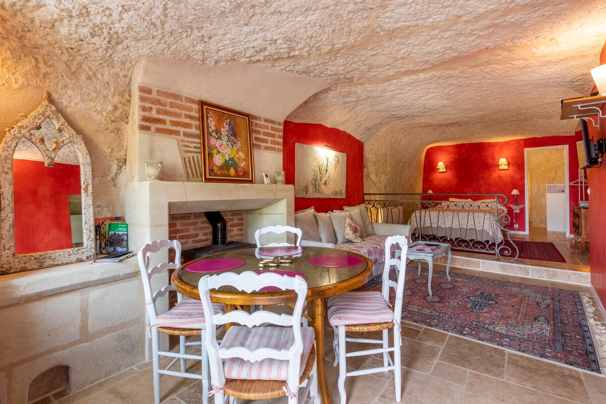 Troglo insolite cosy - terrasse vue Loire cheminée