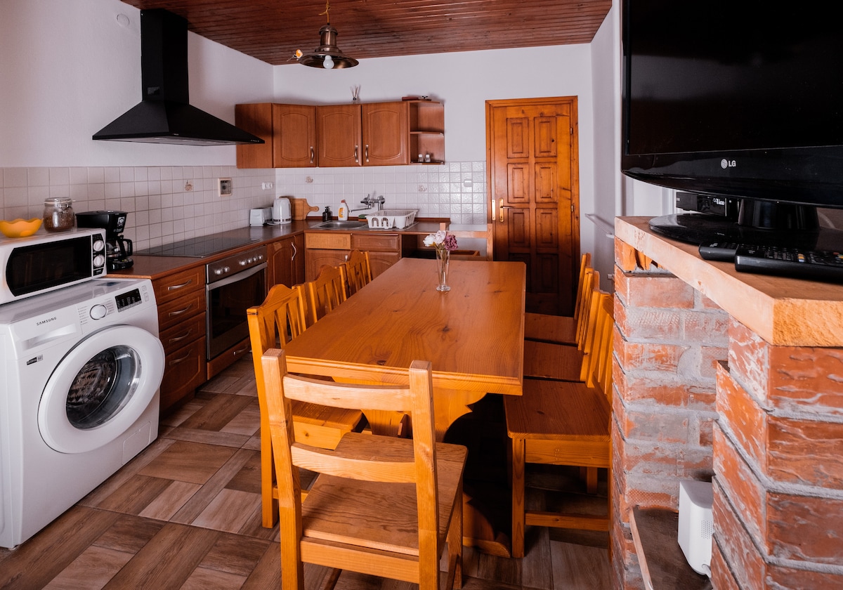Here you can really hide from the outside world. In our smaller apartment, you can feel like a fox in its safe den. You can relax in our cozy, well-equipped apartment with your loved one, or even with the children, to relax from the fatigue of everyday life. The proximity of the forest ensures fresh air that permeates every pore. Sitting on the terrace of the entrance, you can listen undisturbed to the rustling of the trees and be a part of the life of forest animals.