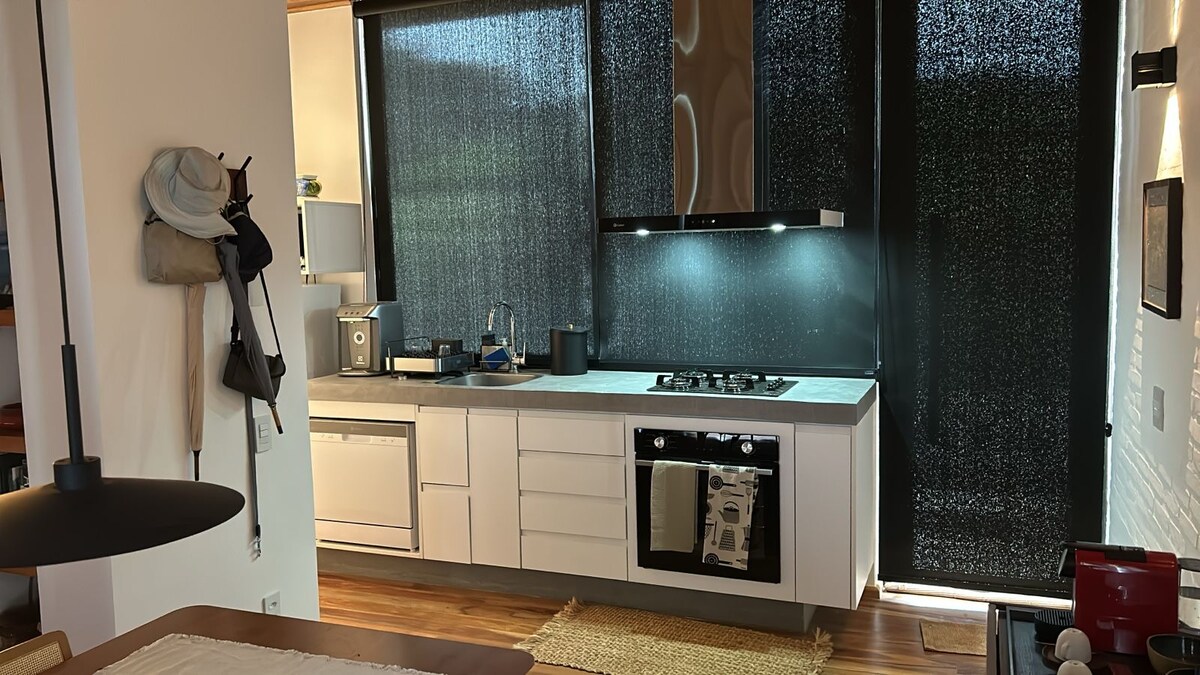 Escape da rotina e viva dias de calma e conforto na Casa Floresta — um refúgio moderno cercado por mata nativa e silêncio. Aqui, o bem-estar se encontra com a natureza: relaxe na sauna a lenha com vista panorâmica, aprecie o pôr do sol do deck e durma embalado pelo som da floresta. A casa é perfeita para casais que buscam desacelerar, trabalhar com vista verde e ou simplesmente estar presentes. Desperte com o nascer do sol, cozinhe com tranquilidade e sinta o tempo passar no ritmo da natureza.