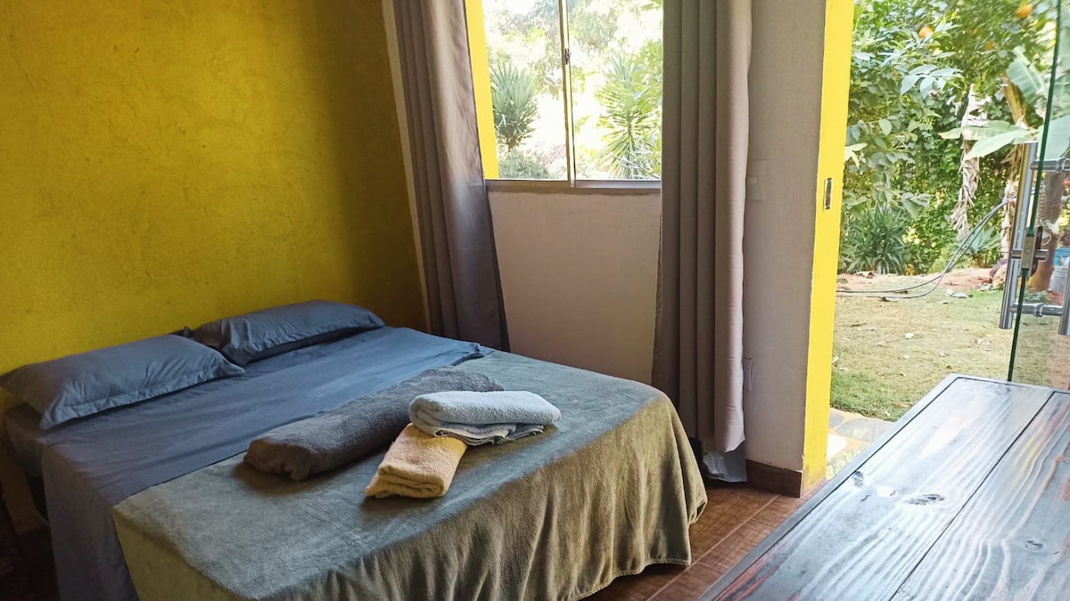 Uma hospedagem para descansar, ler, relaxar, namorar. Para respirar ar puro e entrar em contato com a natureza, refrescar na piscina, fazer um churrasco, tomar um vinho em volta da fogueira. Tudo isso a 30 minutos do centro de BH. O valor é para um casal e aumenta proporcionalmente ao número de pessoas. Hospedamos até 10 pessoas. Não fazemos festas, mas é possível convidar amigos a passarem o dia. A taxa é de 60 reais por convidado que pode usar apenas a área externa por até 8 horas.