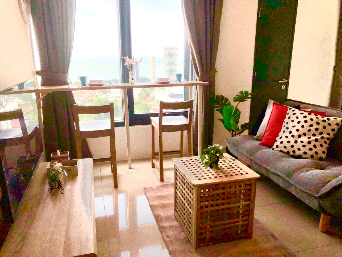 a SEAVIEW DELUXE SUITE in the PERFECT location Charming, cosy seaview suite with NETFLIX, high speed WiFi & DRINKING WATER DISPENSER located just few km away from the city centre & the UNESCO World Heritage Site. By feet: - Japanese/Korean Restaurant/24hrs 7-11 Convenience Store on premise, ground floor - Food stalls, restaurants, super market & wet market By car: 5 km - UNESCO Heritage Site/G’Town 6 km - Gurney Drive 8 km - Queensbay Mall 14 km - Int'l Airport 16 km - Batu Ferringhi beach