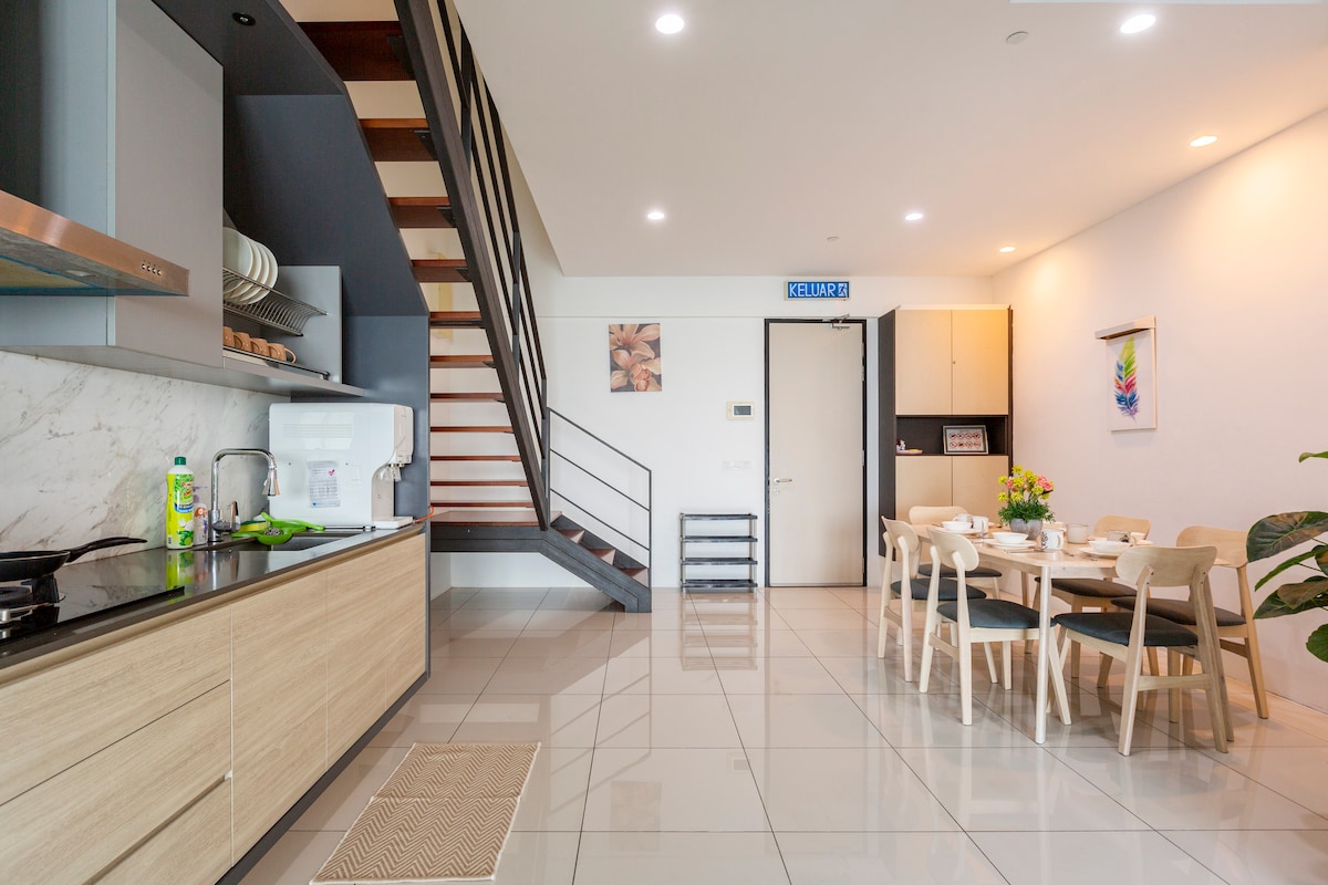 Maritime Suites by Comfy Penang • Unblocked direct full ocean view • Sunrise view from the house • Penang Bridge view from the house • 5 stars SUPERHOST services • Next to seaside • 1200 square feet duplex • 2 private car parks • 300 Mbps WiFi • 30 restaurants, cafes, pubs, Starbucks, Coffee Bean, Subway, 7-Eleven, FamilyMart are at level 2 of our house • 5 to 8 minutes drive to Chew Jetty, Komtar & UNESCO Heritage old town.
