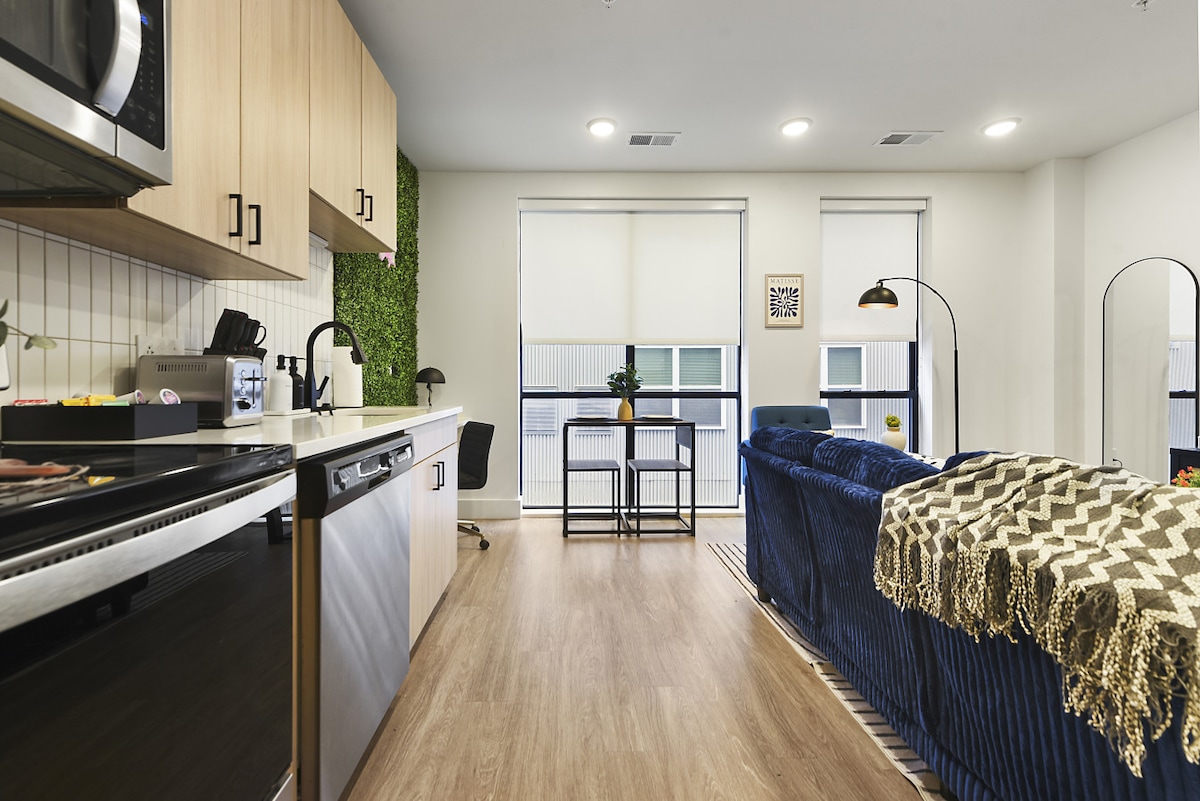 Enjoy a stay in this brand new construction at The Madison on Penn, a boutique 8-unit building that is centrally located in Bloomfield. Just a short walk to both UPMC Children’s and West Penn Hospital, this modern building is ideal for both short and extended stays. ★ 1 King Bed (BR) ★ 1 Queen Sleeper Sofa (LR) ★ Free off-street parking ★ Shared gym with sauna & exercise equipment ★ Free in-unit washer/ dryer ★ Desk with speedy wifi ★ 24/7 guest support