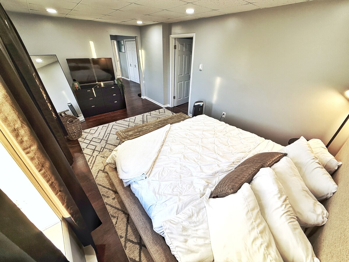 Bezaubernde Einzimmerwohnung mit separatem Eingang. Das Hotel liegt 10 Minuten vom Stadtzentrum von Chambersburg entfernt. Ob historische Sehenswürdigkeiten, kulturell vielfältige Restaurants oder lokales Craftbier – in dieser Gegend gibt es viel zu sehen und zu erleben. Diese Wohnung wurde 2021 erbaut und befindet sich im Untergeschoss unseres individuell gebauten Hauses. Sie verfügt auch über einen voll ausgestatteten Fitnessraum. Haustierfreundlich, Rauchen verboten, Partys verboten.