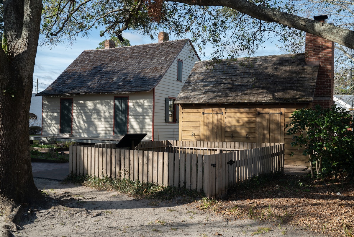 Beautiful, quiet, relaxing guesthouse (formerly Whitney’s ironwork studio). Private entrance. In historic East Hill, surrounded by peaceful, towering oak and pecan trees. The French doors provide lots of natural light and an open, airy feeling. Private patio. Quiet, historic neighborhood -- perfect for walks or bike rides. Only 1.2 miles from downtown. Within a few blocks are breakfast/coffee shops, restaurants, Publix Grocery, pubs. Easy 15 minute drive to the beach.