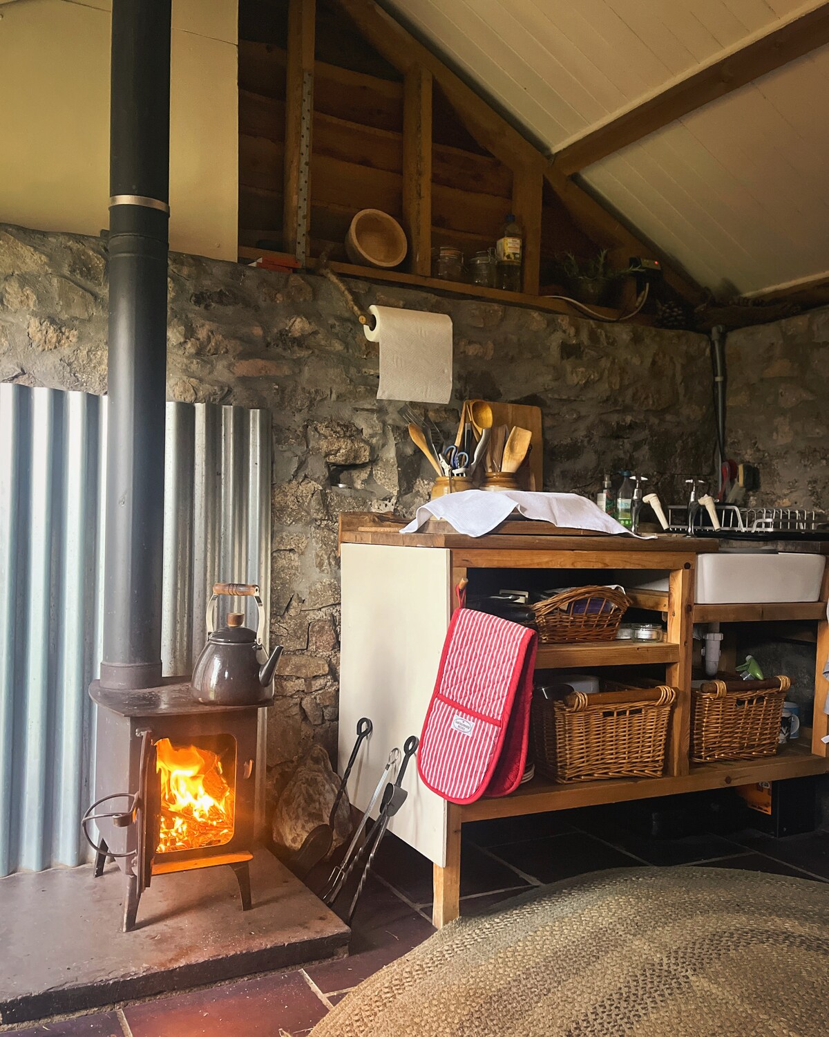 Die Steinhütte befindet sich an einem sehr abgelegenen Ort umgeben von Wäldern. Sie verfügt über zwei Zimmer, eines ist das Schlafzimmer, das ein Doppelbett hat, und das andere Zimmer hat einen ungewöhnlichen gusseisernen Holzofen mit zwei Kochfeldern und einem Küchenbereich. Es gibt eine Außenduschhütte und eine Komposttoilette, die alle für deine private Nutzung bestimmt sind. Es gibt keinen Strom, also musst du das Feuer anzünden, um den Wasserkocher zum Kochen zu bringen. Wir stellen eine Kühlbox zur Verfügung, um Lebensmittel kühl zu halten, und bieten Eisbeutel. Bitte beachte, dass nur ein gut erzogener Hund erlaubt ist.