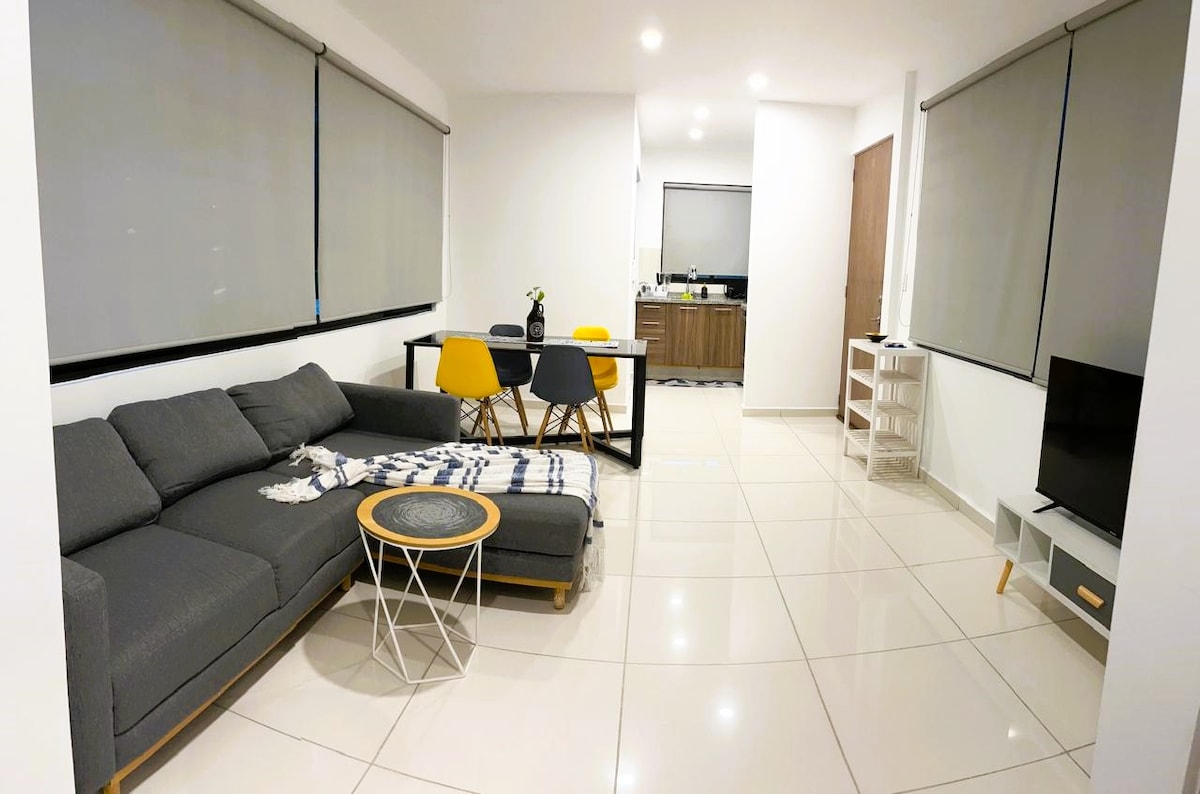 Unglaubliche neue und voll ausgestattete Wohnung. Wir sind vor dem WTC. Wir haben Selbstbedienungsgeschäfte, Lebensmittelgeschäfte, Restaurants, Kinos, Bars, alles nicht mehr als 100 m entfernt. Wir haben Highspeed-Internetzugang, Netflix, Waschmaschine, voll ausgestattete Küche, 24/7 Sicherheitsdienst, Aufzug, zwei Parkplätze und mehr. Es ist ein neues Gebäude, sehr ruhig und ohne Lärm von außen. Perfekt für Geschäftsreisen, Familie oder einfach nur zum Entspannen.