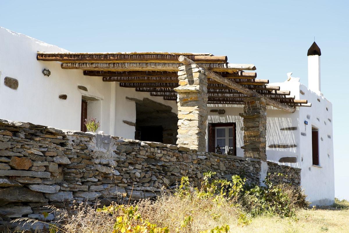 Ein Ferienhaus, das, wie man sagen würde, ein Balkon in der Ägäis ist. Es liegt 430 Meter über dem Meer und 4 km vom Strand Orkos und Ioulida entfernt. Die Landschaft mit Eichen bietet den Besuchern Gelassenheit und wird durch einen wunderbaren Sonnenaufgang und die Sonne, die durch das Meer austritt, vervollständigt, wodurch die Kykladeninseln erleuchtet werden, die hervorragend sind. Kommen Sie und probieren Sie traditionelle Produkte von den Eigentümern und erleben Sie eine einzigartige Gastfreundschaft von einfachen Menschen.