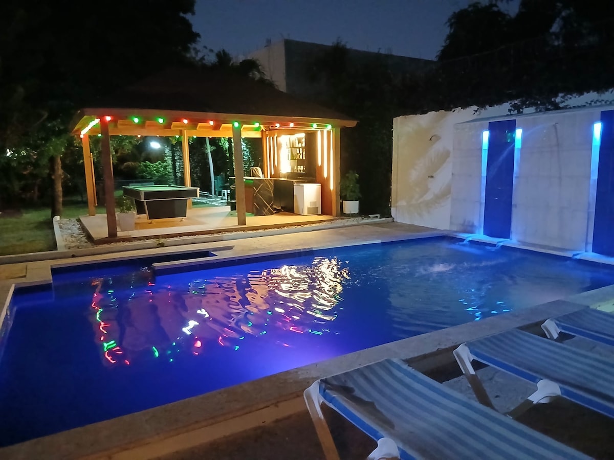 Stylish Villa with Private Pool, Jacuzzi, BBQ & Beach Access Relax with family at this serene villa featuring 3 bedrooms (2 King, 2 Queen, 2 Twin beds, bunkbed, an Air Mattress & 2 Sofas), each with en-suite bathrooms, A/C, and Wi-Fi. Enjoy a private pool, Jacuzzi, BBQ, fully equipped indoor and outdoor kitchen, indoor and outdoor dinning areas. Located in a gated beach complex, Finquitas Campo Mar, with a clubhouse offering an infinity pool, ocean views, a restaurant, and direct beach access.