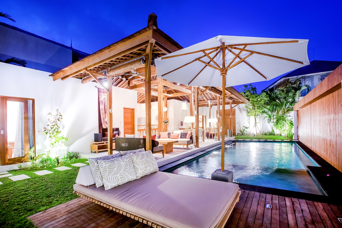 NEU Luxuriöser Kurzurlaub ideal für große Familien und Gruppen – in der Nähe der besten Restaurants, Einkaufsmöglichkeiten und Strand. Bitte lies dir alle unsere Bewertungen durch. Schlafzimmer 5 / Badezimmer 5 / Schlafplätze 16 / Villa / Pool + Kinderbecken „Alles übertrifft die Erwartungen“ – „Die schönste Erfahrung meines Lebens“ – „Unglaubliche Villa mit hervorragendem Personal“. Perfekt für Zusammenkünfte. Viele Einbeziehungen. Für einen traumhaften Kurzurlaub außerhalb der Welt ist die Villa Intenia Weltklasse und der neueste Zuwachs unserer herausragenden Bali Villas Kollektion.