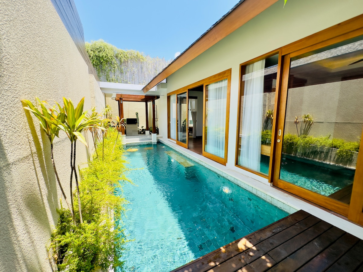 Die Villa befindet sich auf einem 150 Quadratmeter großen Grundstück in einer charmanten tropischen Villenanlage zwischen Seminyak und Canggu, wo der Sonnenuntergangsstrand mit vielen schönen Cafés und Strandclubs nur 4 Gehminuten entfernt ist. Die Villa verfügt über täglichen Reinigungsservice, Frühstück, einen privaten Pool mit Tagesbett, einen großen Wohnbereich, eine voll ausgestattete Küche, ein Freiluftbad mit Badewanne und eine Außendusche.