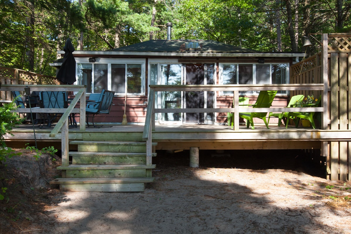 Teils Baumhaus aus Holz, teils Strandhaus und 100 % von dem, was du brauchst, um einen ruhigen Urlaub nur 1,5 Stunden von Toronto entfernt zu genießen! Gehe die private Treppe hinauf und halte inne, um den spektakulären Blick auf die Baumkronen und das Wasser von deiner eigenen umlaufenden Terrasse aus zu genießen, bevor du deine 900 Quadratfuß große Oase betrittst. Genieße den Zugang zu deinem eigenen Rasen, Picknicktisch und Strandbereich* und allem, was die Georgian Bay und die Gegend zu bieten hat. *Wasserstände schwanken Insta: sunset_beach_cottage_canada (Sonnenuntergang_Strand_Hütte_Kanada)