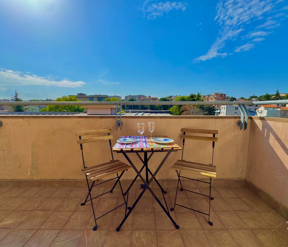 Musa Moderna a Pescara Porta Nuova - zona Stadio • 🏖️ 5 min dal mare • ⚽ 3 min dallo stadio • 🌳 4 min dalla pineta • 🅿️ Parcheggio gratuito • 📶 Wi-Fi stabile • 🧹 Pulizia e affidabilità Appartamento di 117 mq - spazioso, luminoso e confortevole. Balconi indipendenti per ogni camera. Offre relax, comfort e una posizione strategica, per vivere la città senza rinunciare al mare. Ideale per famiglie, piccoli gruppi, artisti, viaggiatori, visiting professor, colleghi in trasferta.