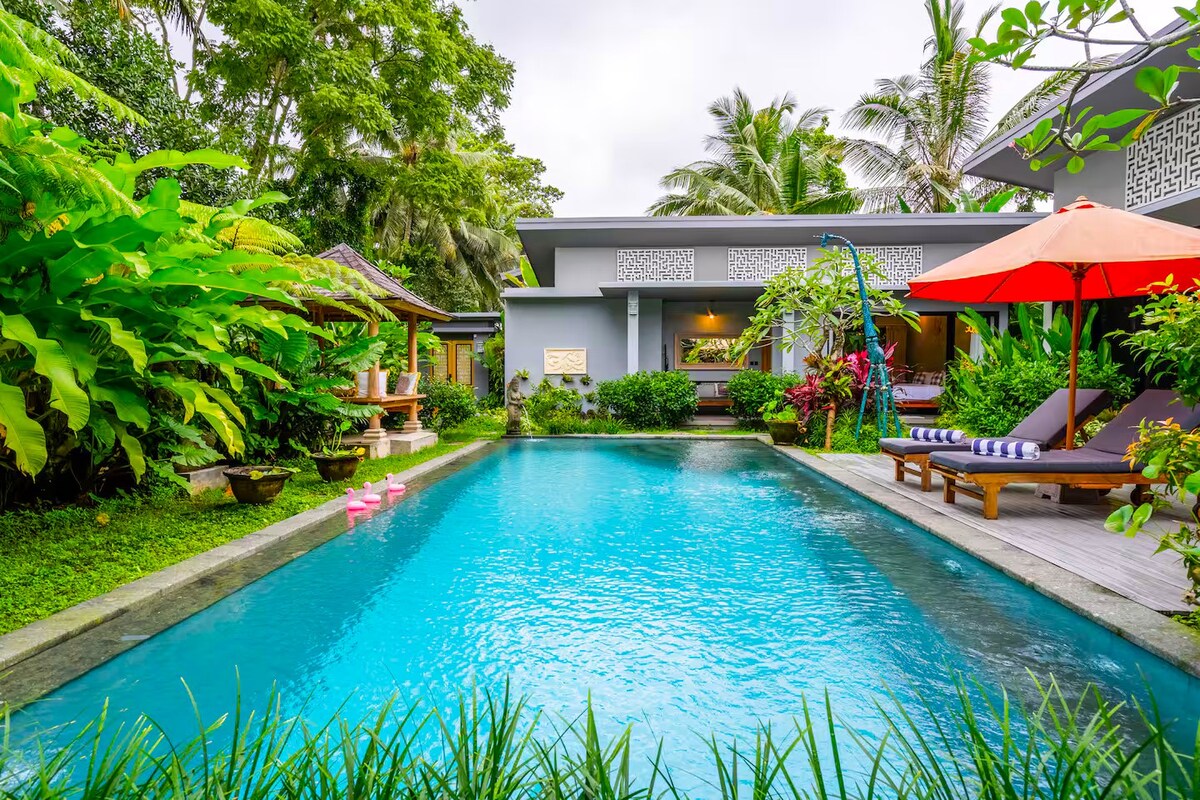 Tropische 3BR Oase mit riesigem Pool + Pavillon, Ubuds Beste