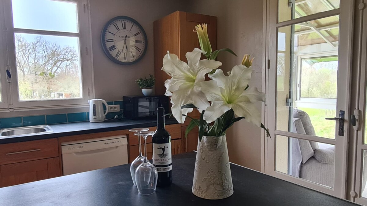 🌿 Geräumiges Landhaus für bis zu 9 Personen, mit 4 Schlafzimmern und 3 Badezimmern. Perfekter Urlaub außerhalb der Saison für Familientreffen, ein Wochenende mit Freunden 🍷 oder Remote-Arbeit mit schnellem WLAN💻. Genießen Sie ein großes Wohnzimmer, eine voll ausgestattete Küche, einen privaten Garten mit freiem Blick und den Charme von Aubeterre, das nur 3 Minuten entfernt ist. Komfort, Natur und authentischer französischer Lebensstil erwarten Sie!