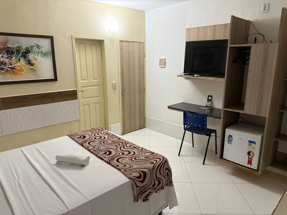 Quarto casal número 113 - Café da manhã incluso no valor da diária. O Hotel fica a 300 metros da Orla; próximo a unidades de ensino (Universidade de Pernambuco, Uninassau, Faculdade de Administração- Facape, Colégio GGE); a bons restaurantes e a 15 minutos (de carro) do River Shopping e Bodódromo.