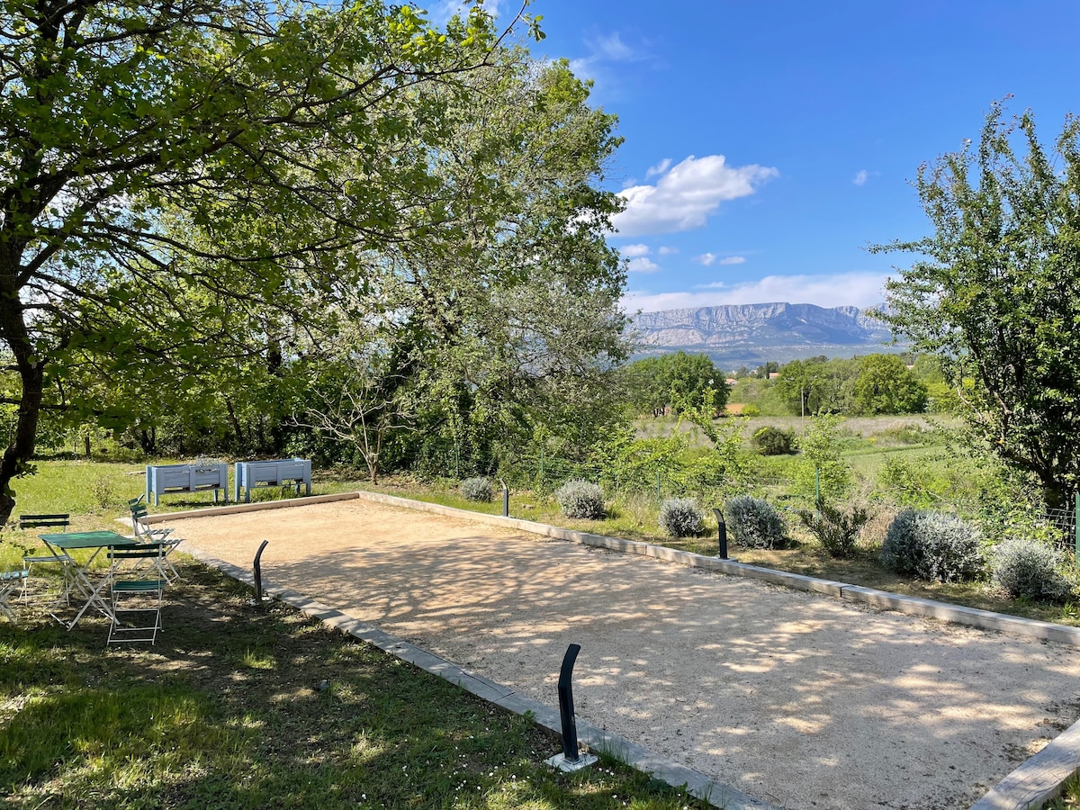 Dieses helle und klimatisierte Haus befindet sich am Ende unseres 4000 m2 großen Landschaftsgrundstücks. Sie ist sehr gut ausgestattet mit hochwertiger Ausrüstung, um Ihnen einen ausgezeichneten Aufenthalt zu garantieren. Die Provence, wie Sie sie sich vorstellen... privater Garten ohne Gegenüber, freier Zugang zum Pool, zum Petanque-Platz, Grill. Zu Fuß vom Zentrum unseres charmanten provenzalischen Dorfes. Idealer Ausgangspunkt, um Aix-en-Provence, Marseille, Cassis und die Calanques zu entdecken oder in der Sainte-Victoire zu wandern.