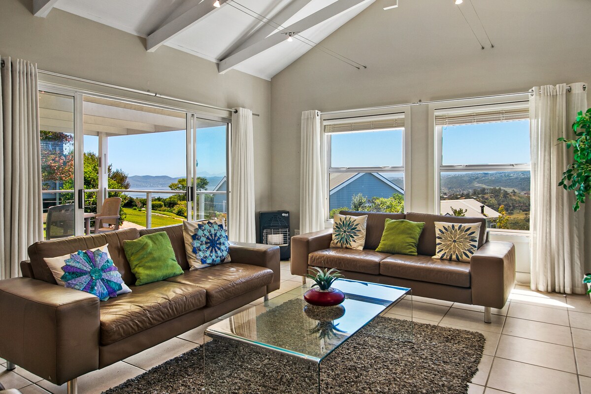 180-Grad-Blick (Solar für Stromsicherheit) auf die atemberaubende Lagune von Knysna in einer ruhigen Gegend. Erstklassige Ausstattung in einem neuen Haus! Schöner Garten und Pool. Sonnenterrasse, um die Aussicht zu genießen, und ein Kamin, um an kühleren Abenden für Atmosphäre und Wärme zu sorgen. So nah an der Stadt, aber ruhig und privat. Braai/Grill zum Kochen und Essen im Freien an den vielen schönen Abenden. Die Bewertungen aller unserer Gäste sagen alles und 75 % unserer Gäste sind anspruchsvolle internationale Reisende.