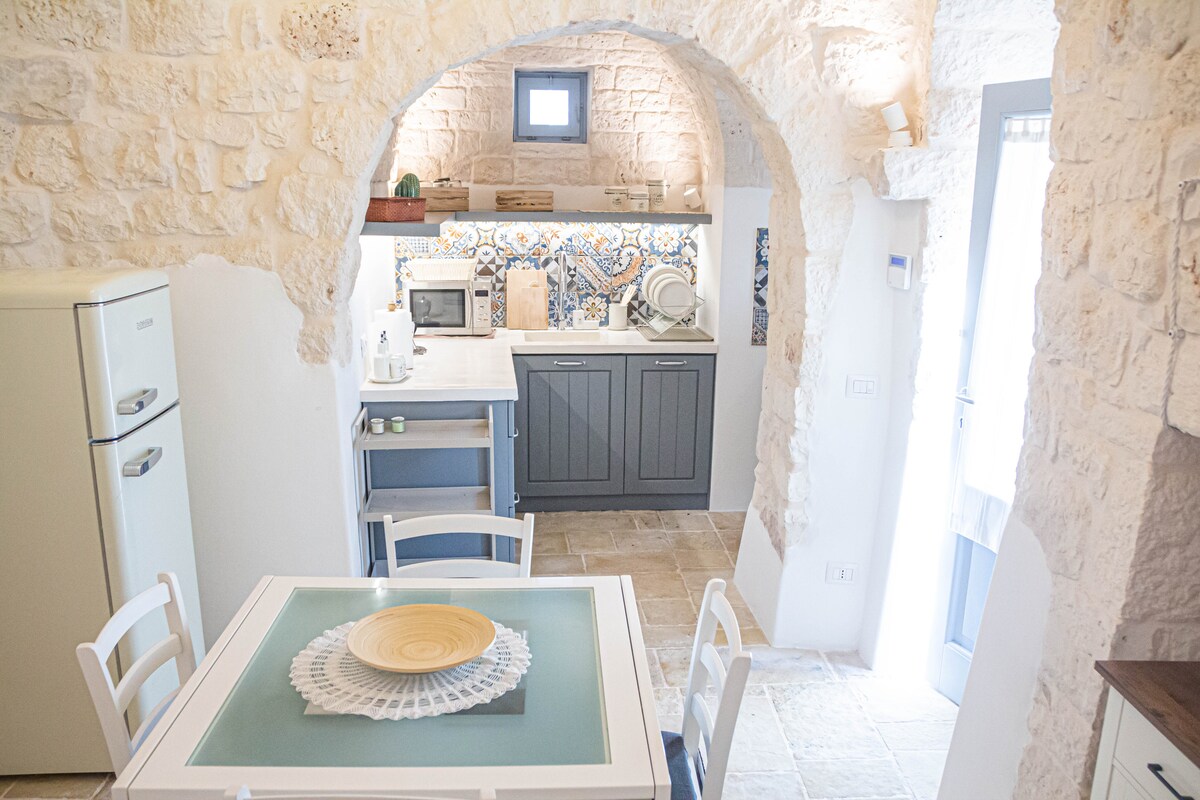 Raffinato trullo indipendente dell'800 nel cuore della Valle D'Itria di recente restauro conservativo che ne ha mantenuto essenza e semplicità. Un viaggio nel tempo tra ulivi secolari, terre rosse e tramonti che vi ruberanno il cuore.