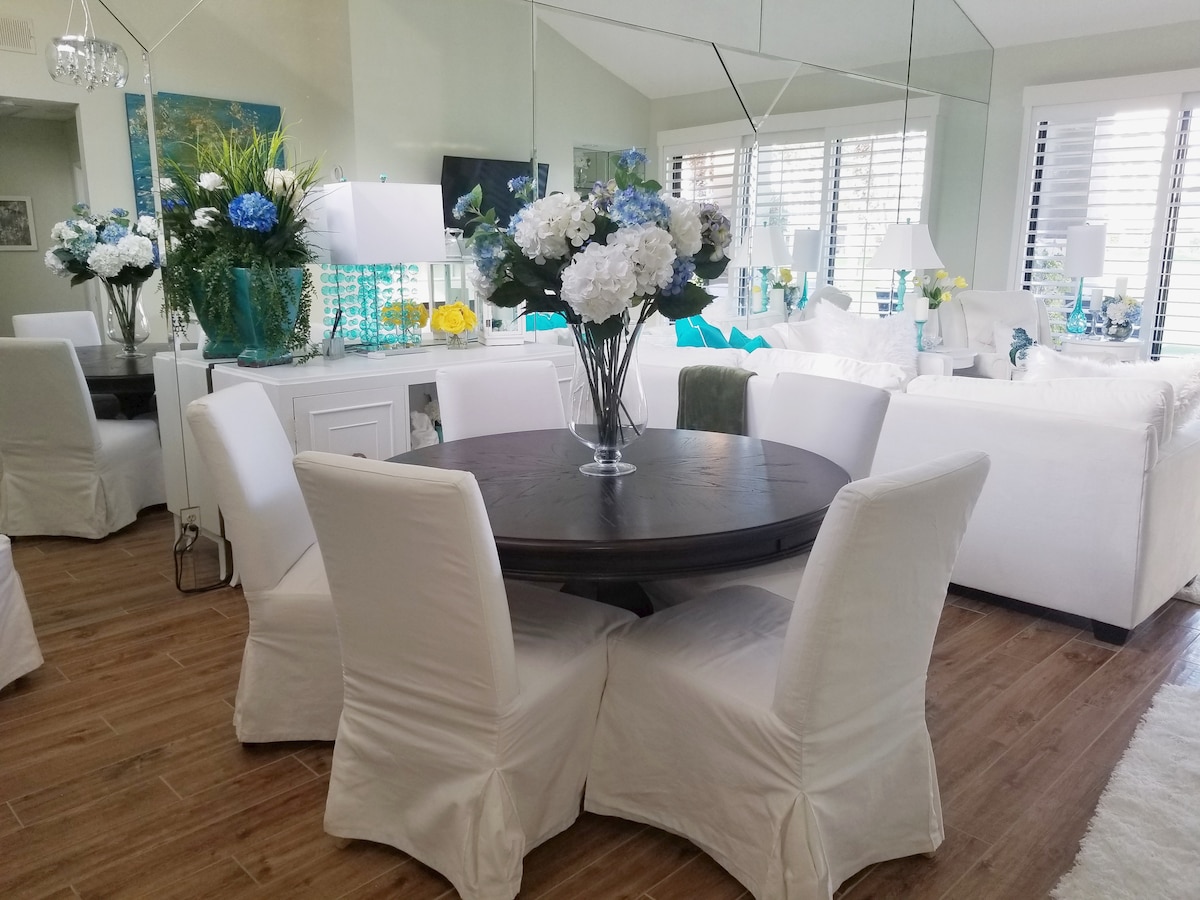 Willkommen bei uns zu Hause auf der PGA West in La Quinta, Kalifornien. Wir sind darauf spezialisiert, Gäste für Veranstaltungen, Festivals, Kurzurlaube mit Familien und Freunden aufzunehmen, oder einfach nur ein Wochenende zum Entspannen! Wir möchten, dass Gäste ein erstklassiges Resort-Erlebnis haben, wenn sie zu uns nach Hause kommen. Das Haus hat einen beheizten Pool und Spa mit Blick auf den schönen Golfplatz. Du kannst Marshmallows auf unserem Kamin rösten oder Abendessen grillen, während du die atemberaubende Aussicht auf den Sonnenuntergang auf dem Golfplatz und den Bergblick genießt.