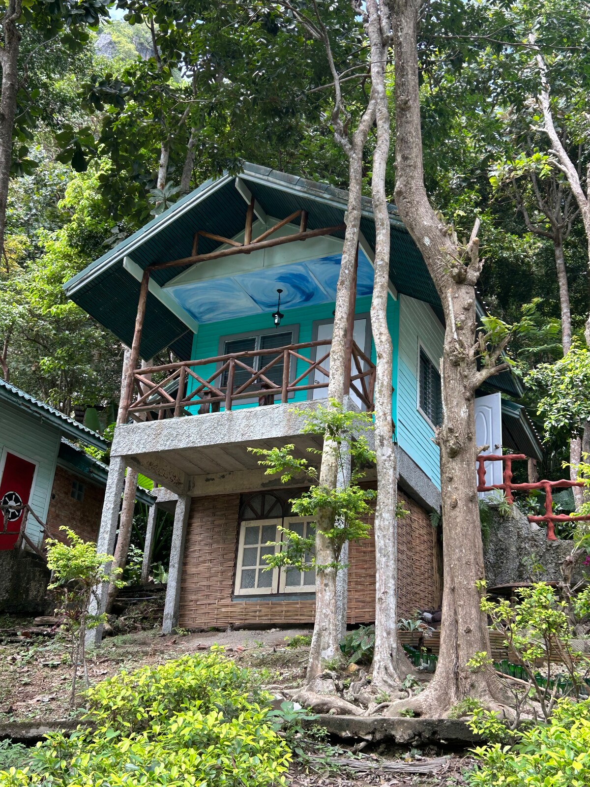 This small Bungalow is located in a very quiet green area with lots of birds and squirrels around and some Jungle Noises. Its having everything the cost concious traveller needs, even a kitchen with all the stuff you need to prepare breakfast or a small meal. The place has an partly open bathroom, so enjoy the sun and the sky when taking a shower, the other facilities are under the roof, pls check the pictures. NO AIRCON, just keep doors open and enjoy. There is a small terrace infront.