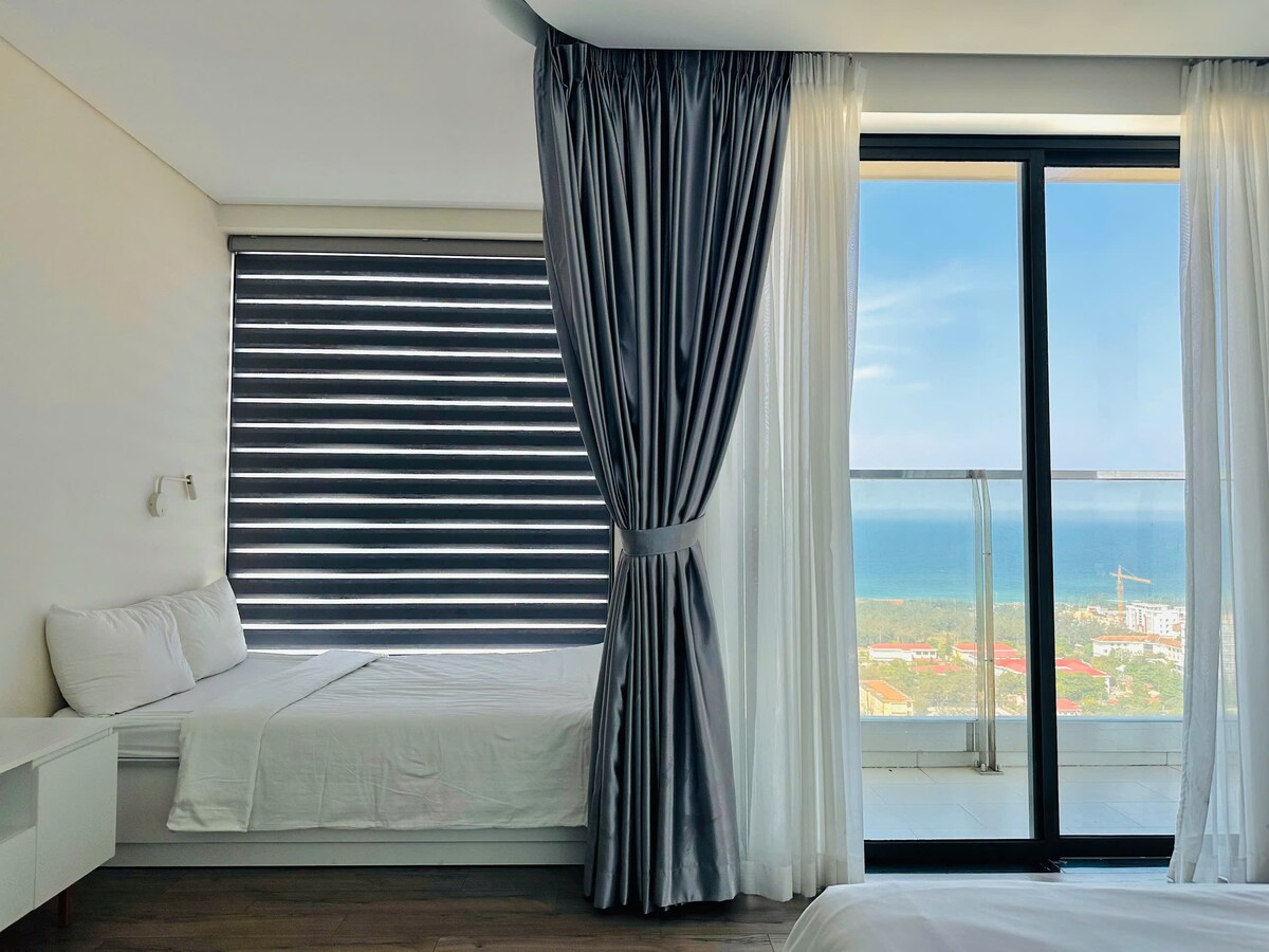 Wir haben gerade ein brandneues, 100 % frisches Condotel im Apec Phu Yen Tower – dem höchsten Gebäude in Phu Yen - ins Leben gerufen! Stell dir vor, du entspannst auf deinem Balkon mit atemberaubendem Meerblick. 🌊 Im Inneren findest du ein gemütliches und anspruchsvolles Design, perfekt für ultimativen Komfort und Entspannung. Mit zwei Queensize-Betten bietet es bequem Platz für bis zu 4 Erwachsene und ist ideal für Gruppen von Freunden oder für Familien.
