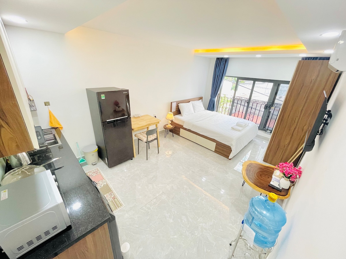 Serviced Apartments bieten eine herrliche Mischung aus Komfort, Bequemlichkeit und Stil. - Das Hotel liegt im Herzen von Binh Thanh, in der Nähe der Thi Nghe-Marktbrücke, der berühmten Hai An-Buchhandlung, der Natur des Saigon-Zoos und des Botanischen Gartens... aber versteckt inmitten einer ruhigen und familienähnlichen Gasse. - Unser Design ist darauf ausgerichtet, die Ruhe inmitten der geschäftigen Stadt zu bewahren. Die Wohnung ist komplett mit WLAN und Klimaanlage ausgestattet; mit vielen praktischen Dienstleistungen und Annehmlichkeiten.