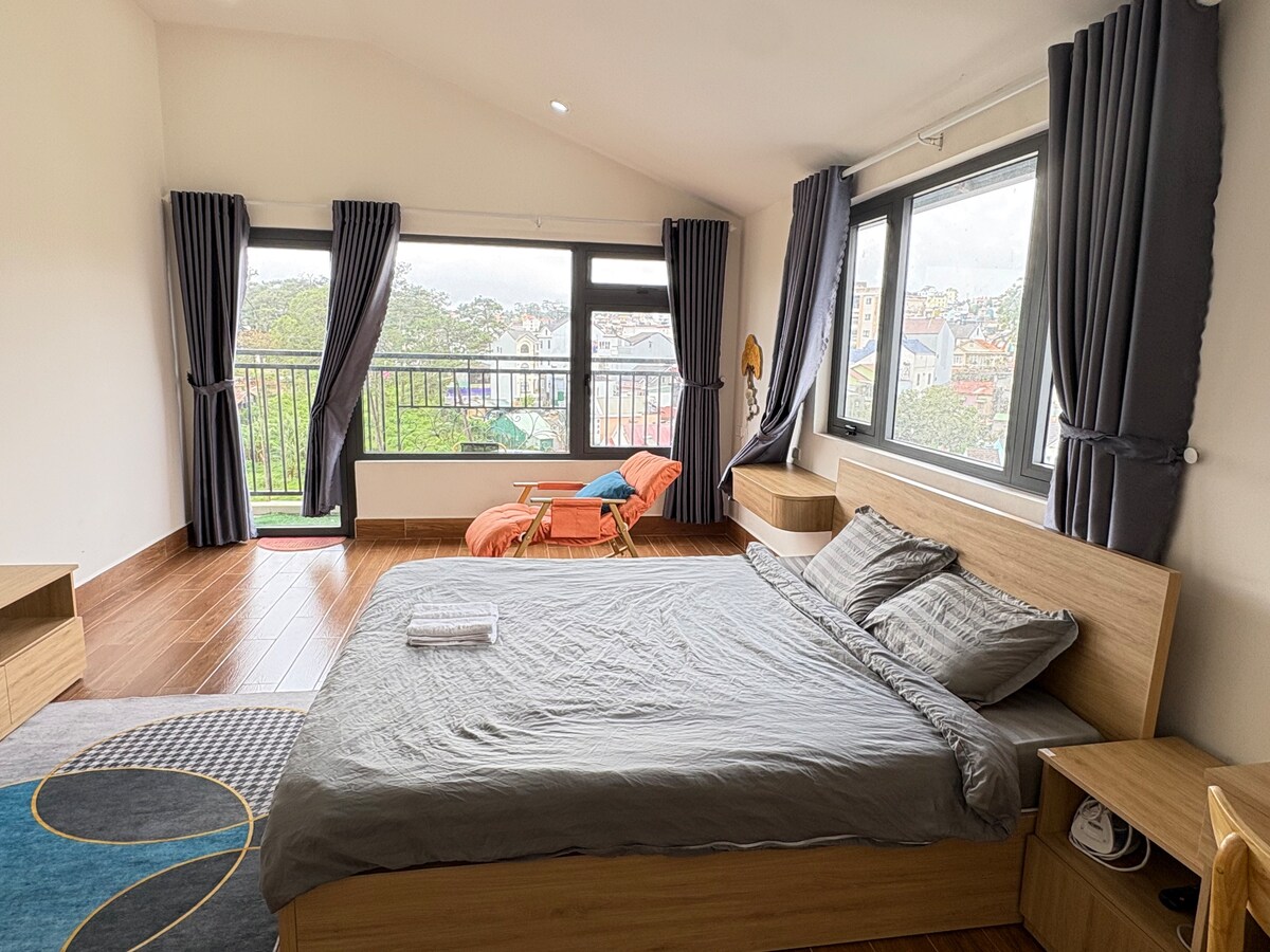 Das Studio befindet sich im ersten Stock im Haus 1 km vom Dalat-Markt entfernt. Es ist breiter als 33 m ², mit einem poetischen Lesefenster mit Blick durch den Hortensiengarten unter der alten Kiefernwurzel. Der private Balkon ist mehr als 17 m ² von grünen Bäumen beschattet, von hier aus ist es möglich, den Sonnenuntergang an schönen Tagen zu sehen. Das Zimmer ist hell, offen, breit, viele Steckdosen, du kannst bequem arbeiten oder sanft im Zimmer trainieren. Die Glastür ist das japanische Aluminiumglassystem YKK, um die Störung draußen zu begrenzen. Ich muss zwei Treppen nehmen, um zu diesem schönen Zimmer zu kommen. Herzlich willkommen.