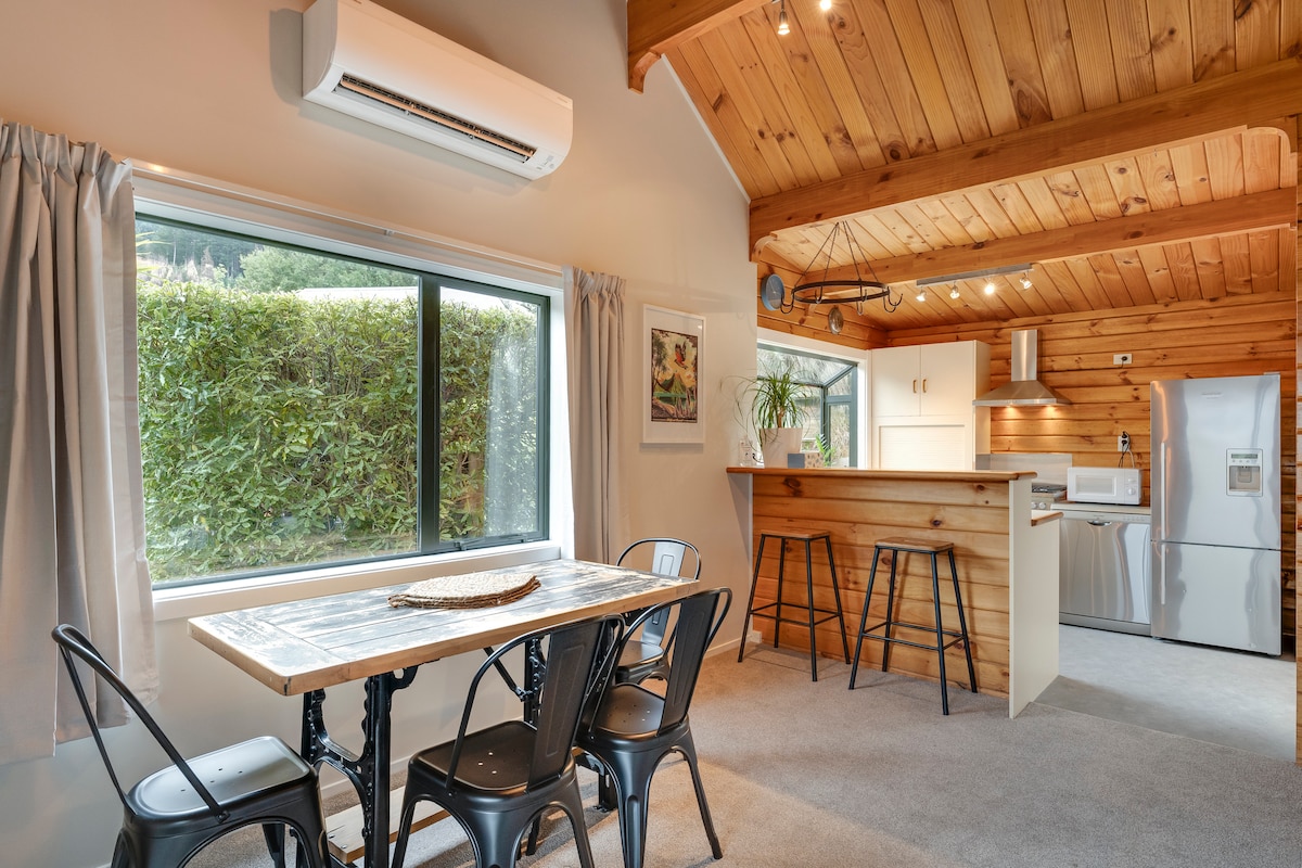 Eingebettet in einen einheimischen Buchenwald wird dir unsere maßgeschneiderte kleine Hütte den Atem rauben. Wachen Sie mit Vogelgezwitscher auf, genießen Sie den Morgentee neben einem Tui und genießen Sie das herrliche Freibad, während Sie die Sonnenuntergänge oder die Aurora Australis über Bob's Cove beobachten. Unser gemütlicher, kleiner Raum ist modern, unvergesslich und wirklich einzigartig, er ist nur 12 Minuten von Queenstown und 30 von Glenorchy entfernt. Genieße das Stadtleben und zieh dich dann in dein privates Refugium zurück. Wander- und Spazierwege liegen direkt vor der Haustür!